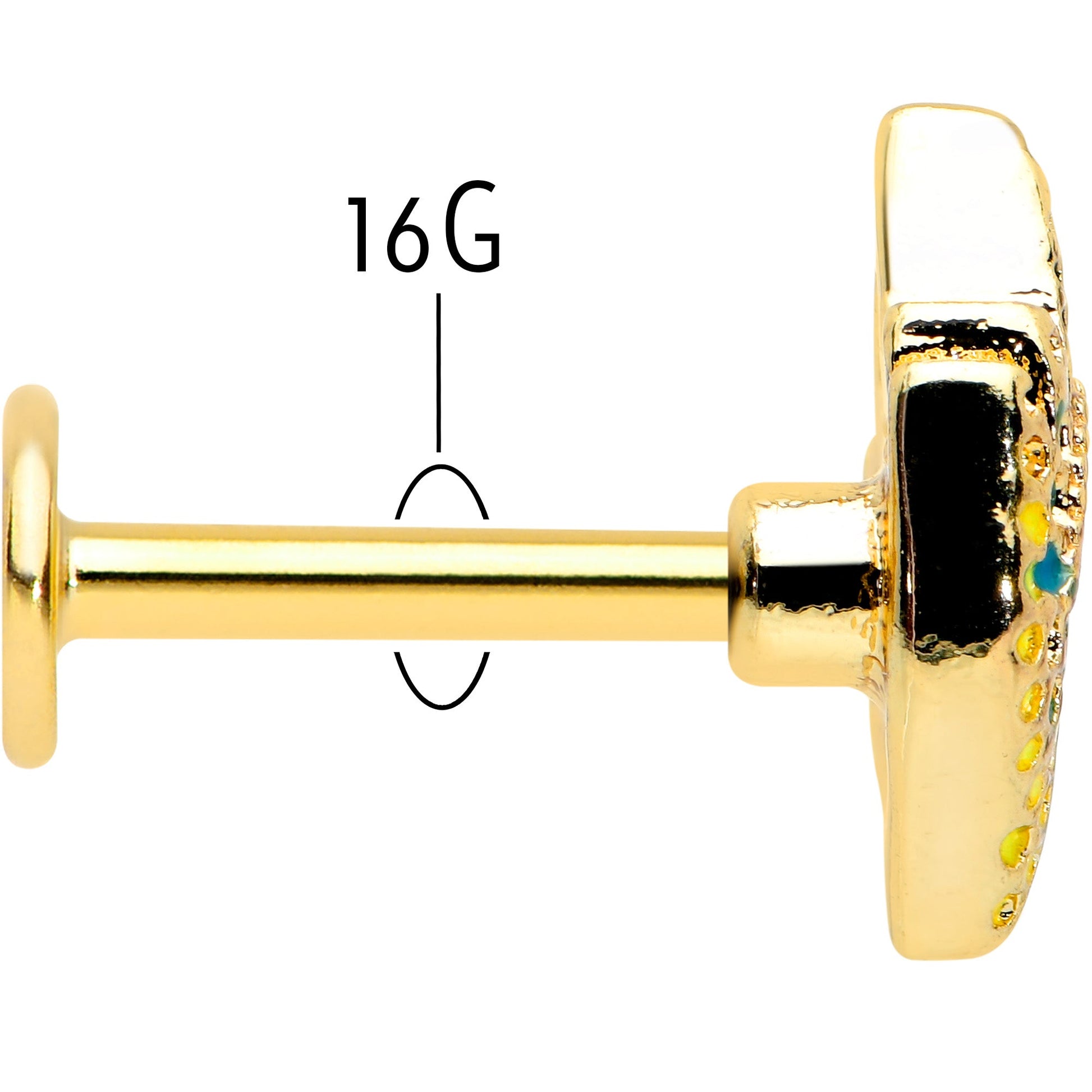 16G 1/4 Gold Tone Bold Peacock Feather Labret Monroe Tragus