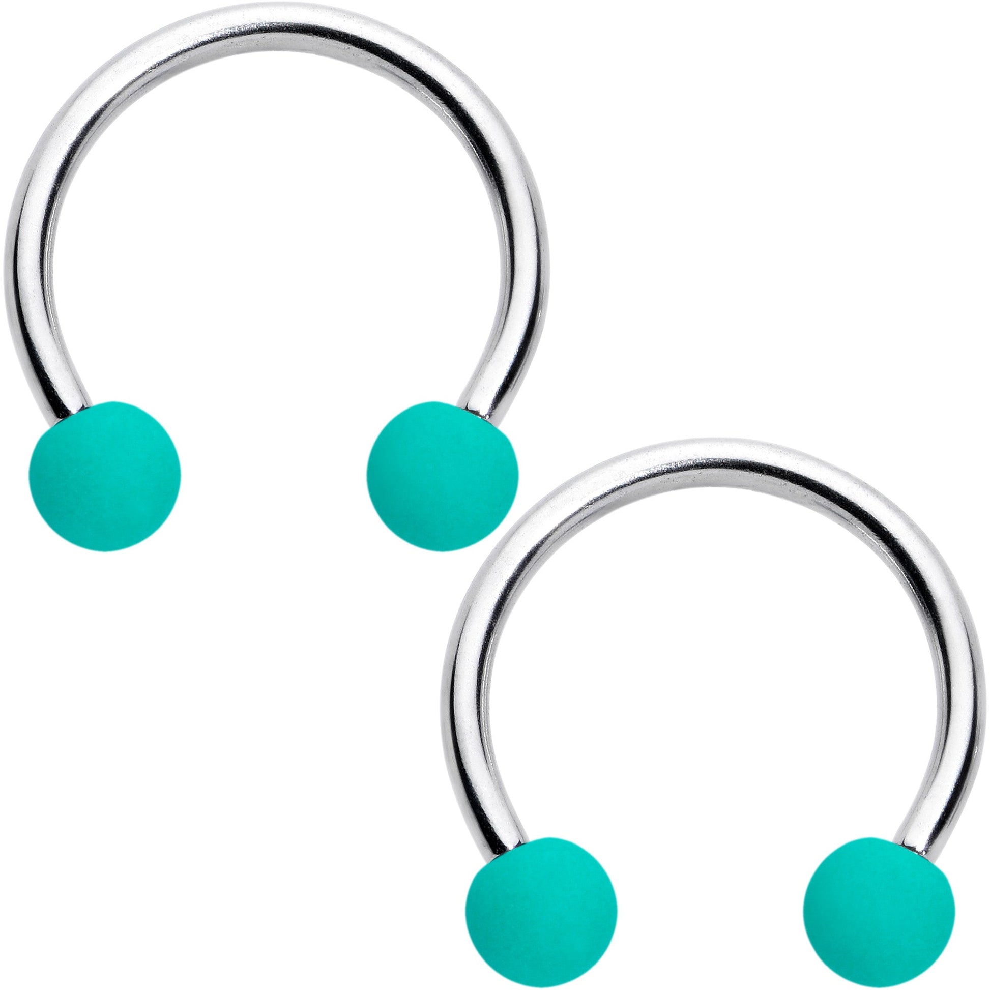 16 Gauge 3/8 Matte Black Blue Teal Horseshoe Circular Barbell Set of 6
