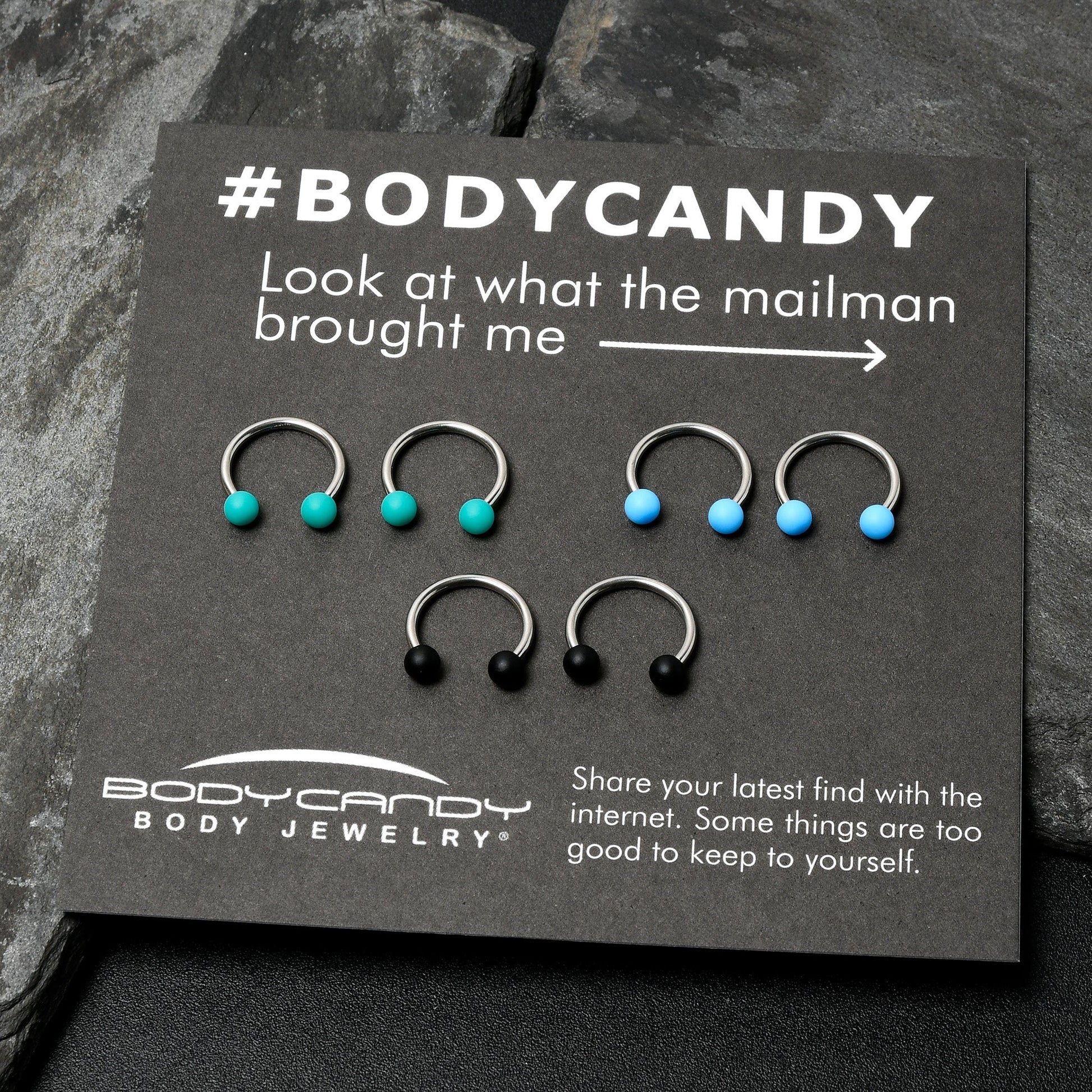 16G 3/8 Matte Black Blue Teal Horseshoe Circular Barbell Set of 6