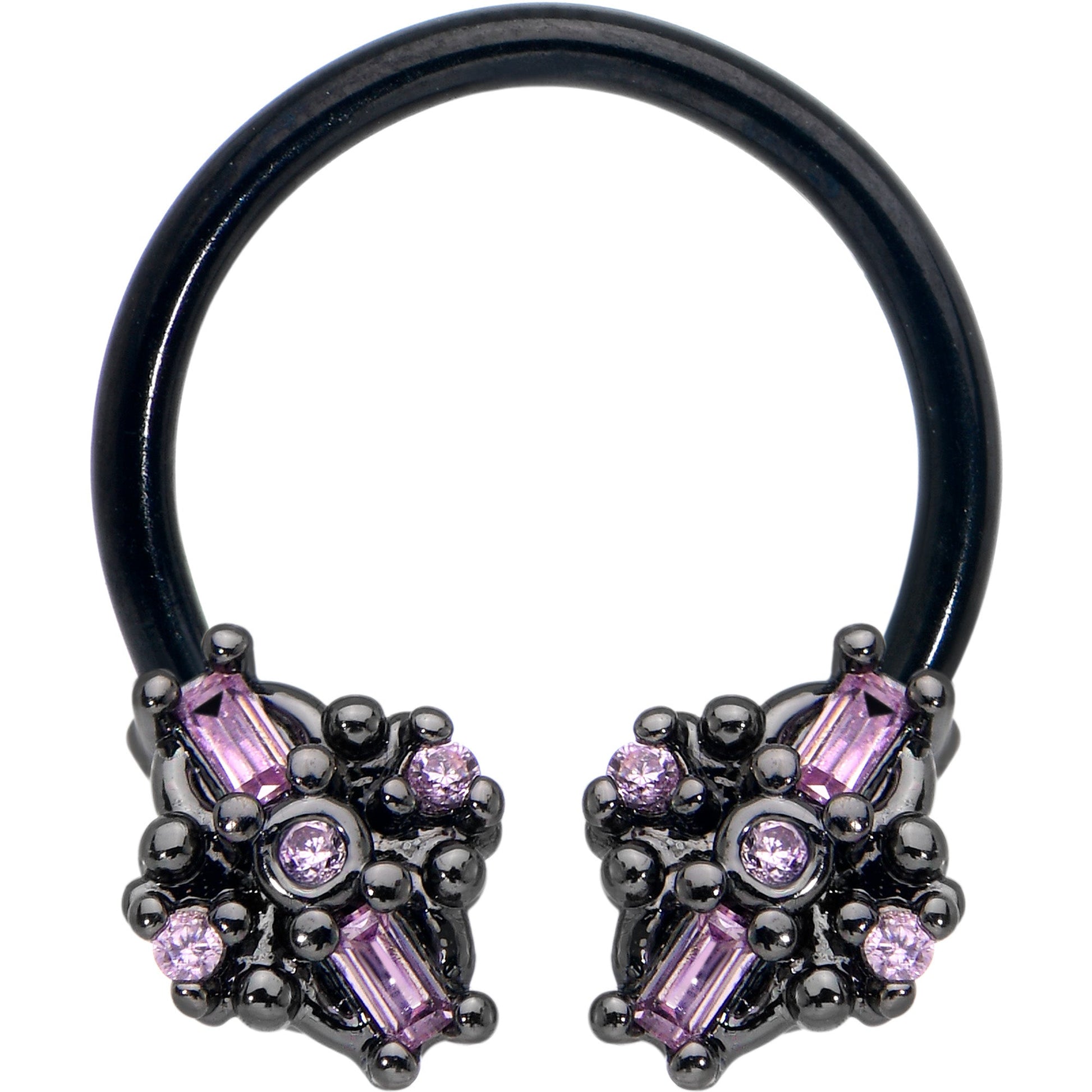 16G 3/8 Pink Gem Black Opulent Cross Horseshoe Circular Barbell