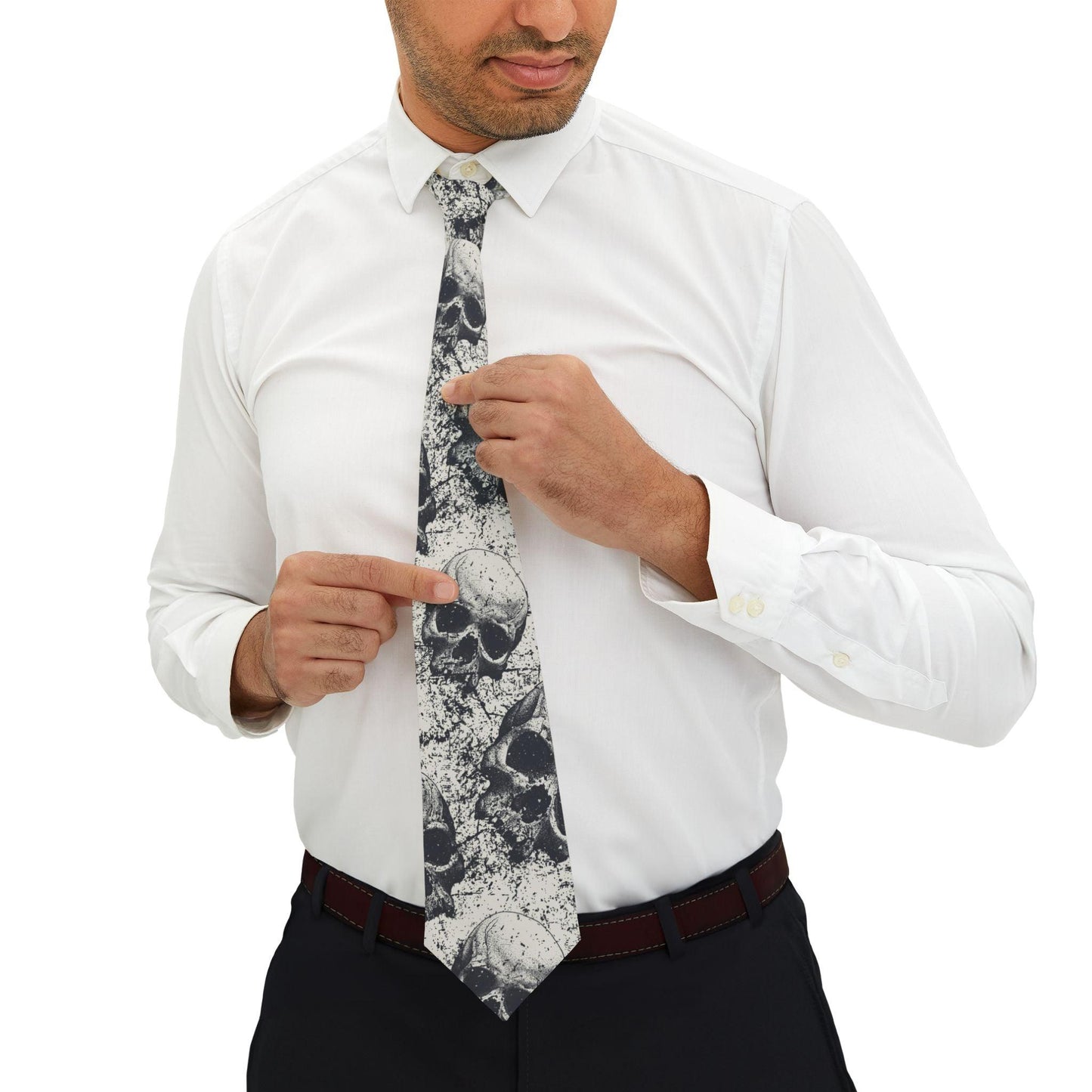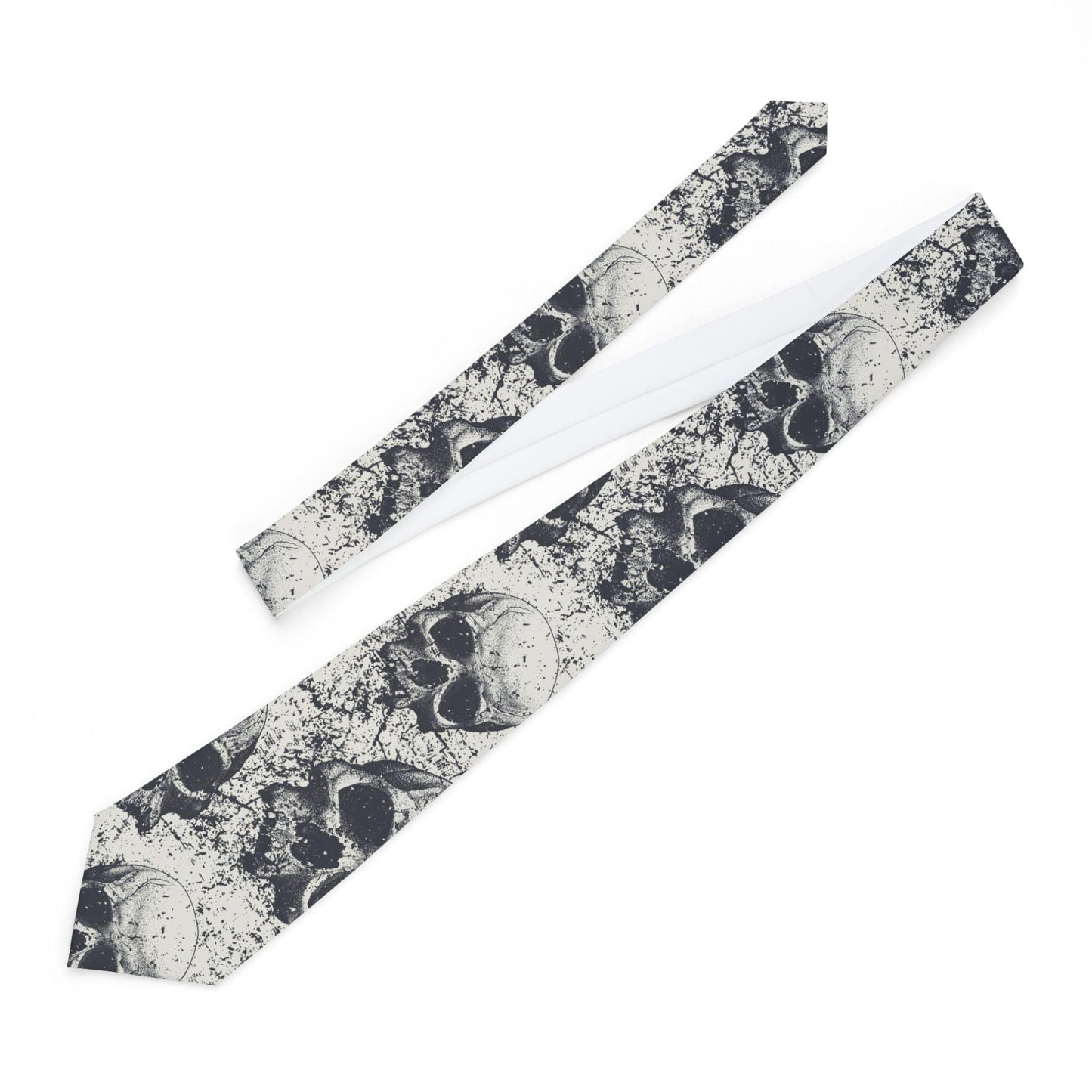 Help your customers spice up their looks with Ancient Skulls neck ties that make a statement whether at the office, or the next costume party. Put a funny spin, dazzling patterns, or beautiful artwork on them and watch an instant favorite wardrobe choice come to life. Made of 100% polyester, it is ready for a vibrant color print and offers a silky finish along with a keeper loop for holding the tie tail. Whether it's a humorous, a personal, or a professional vibe, this custom-printed tie will help your customers dress to impress.