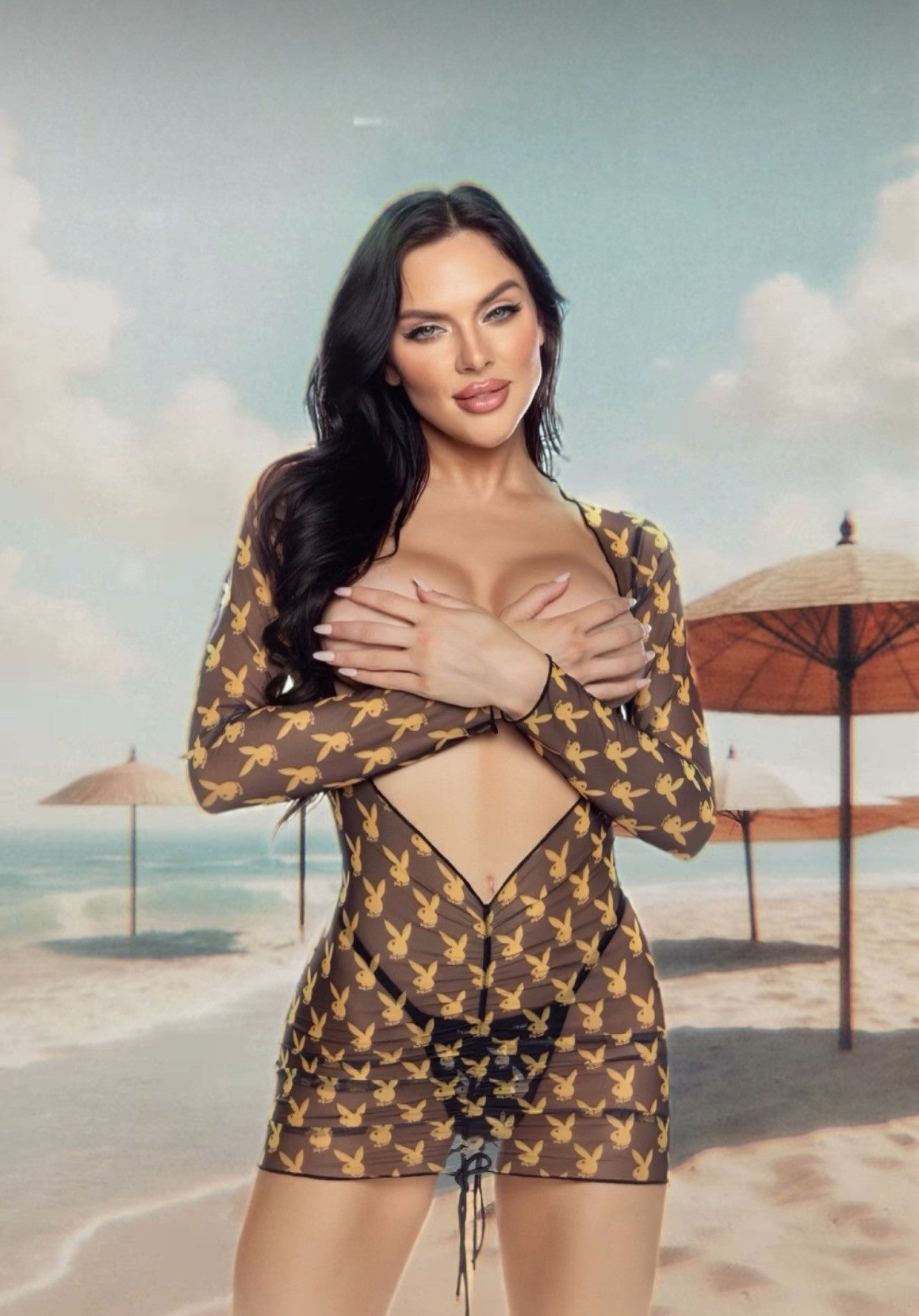 Turn heads poolside with the Bunny Cover-Up from RaveFix — a bold and playful essential for your swimwear collection. Designed with an all-over bunny logo mesh, this flirty cover-up adds just the right touch of sexy while keeping things effortlessly cool. The plunging neckline enhances your silhouette, while adjustable neck ties allow for a customizable, secure fit. Lightweight, breathable, and undeniably eye-catching, this exclusive piece layers perfectly over any bikini or one-piece. Whether you're lounging beachside or making an entrance at your next pool party, the Bunny Cover-Up delivers statement style with signature RaveFix attitude. Get ready to flaunt your inner bunny in this must-have swimwear staple.