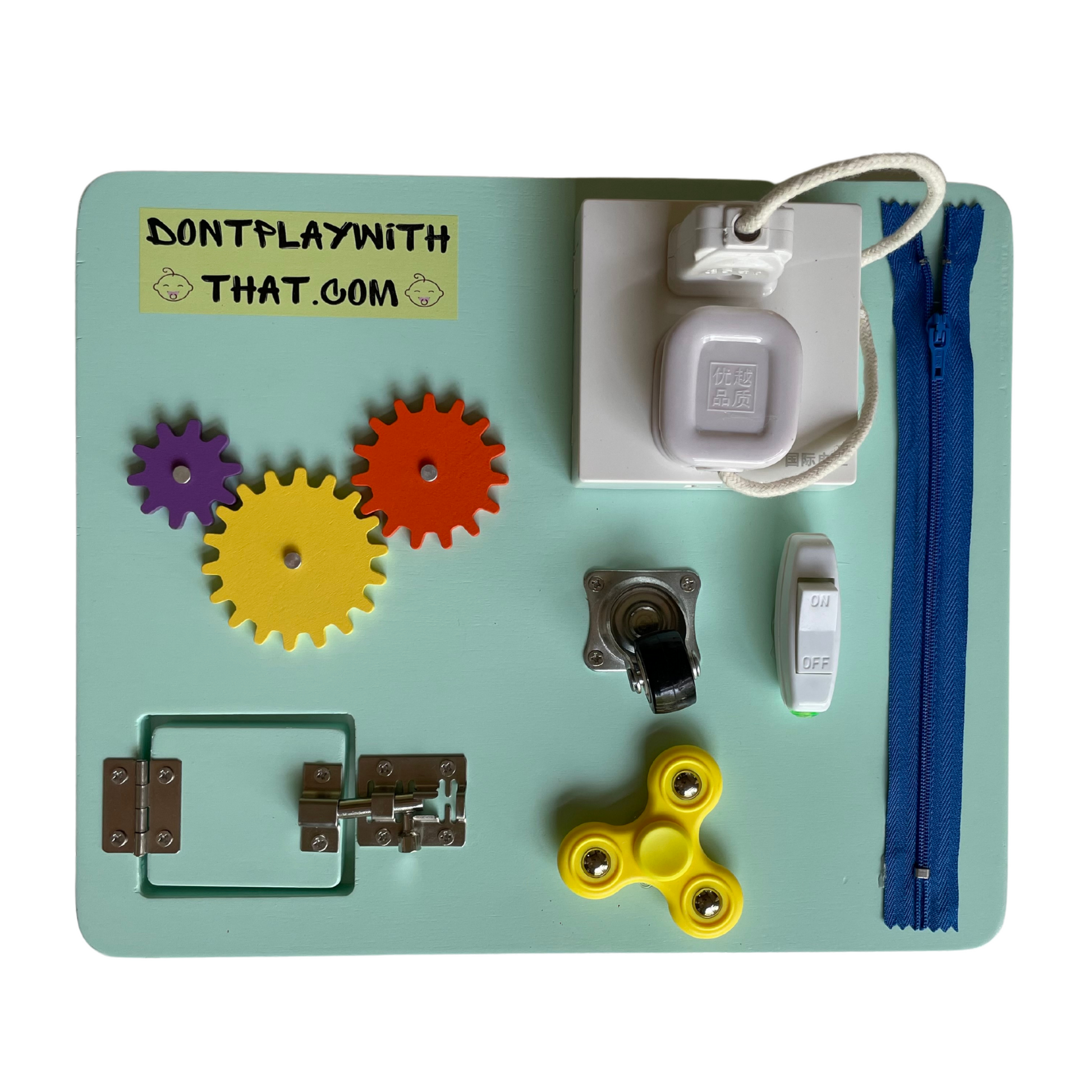 Which is why we were pushing so strenuously to get this specially designed baby Montessori Busy Board into our store. Not only does it look great, we actually tailored each item according to what our babies are constantly gravitating toward. Our babies, and the countless babies which we hear all about from their parents. These critters should have many consecutive minutes of entertainment (hopefully more than four LOL!).
