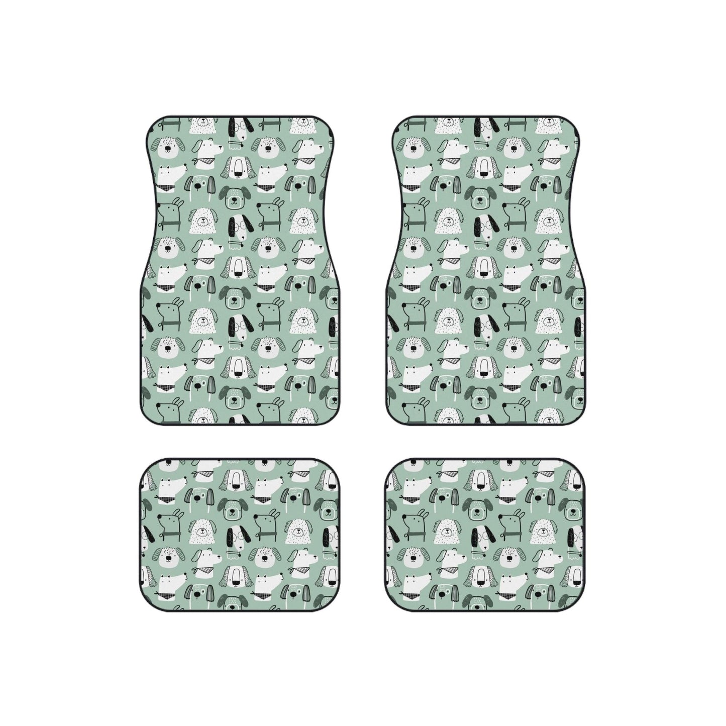 Give a doggy touch to any car interior with these Illustrated Doggers car mats. They come in a set of four and include two front and two rear mats with a non-slip rubber backing. Print unique designs in vibrant colors on the 20oz polyester needle punch surface, and clean them easily with a vacuum or a cool water rinse.