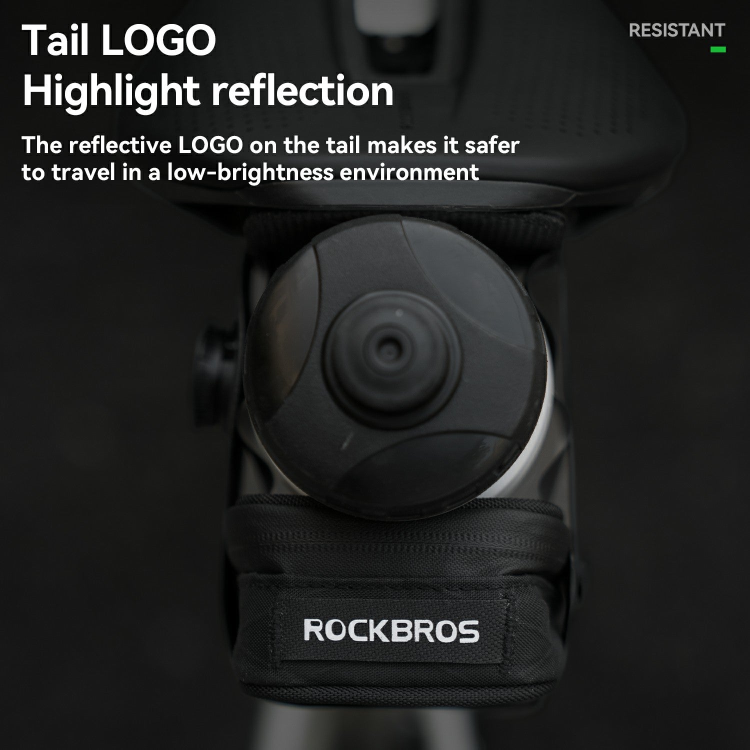 This multifunctional cycling tail bag is designed for both convenience and safety. Featuring a reflective logo on the rear, it enhances visibility during night rides and allows easy attachment of a tail light. Made from thickened, water-repellent, and wear-resistant polyester, the bag is durable and protects your belongings from the elements. The knob-type locking system, combined with straps, securely fixes water bottles (0.6L strap capacity), while the bag itself provides 0.2L storage for small essentials. Lightweight at only 113g, it is perfect for road, mountain, and casual cycling.
