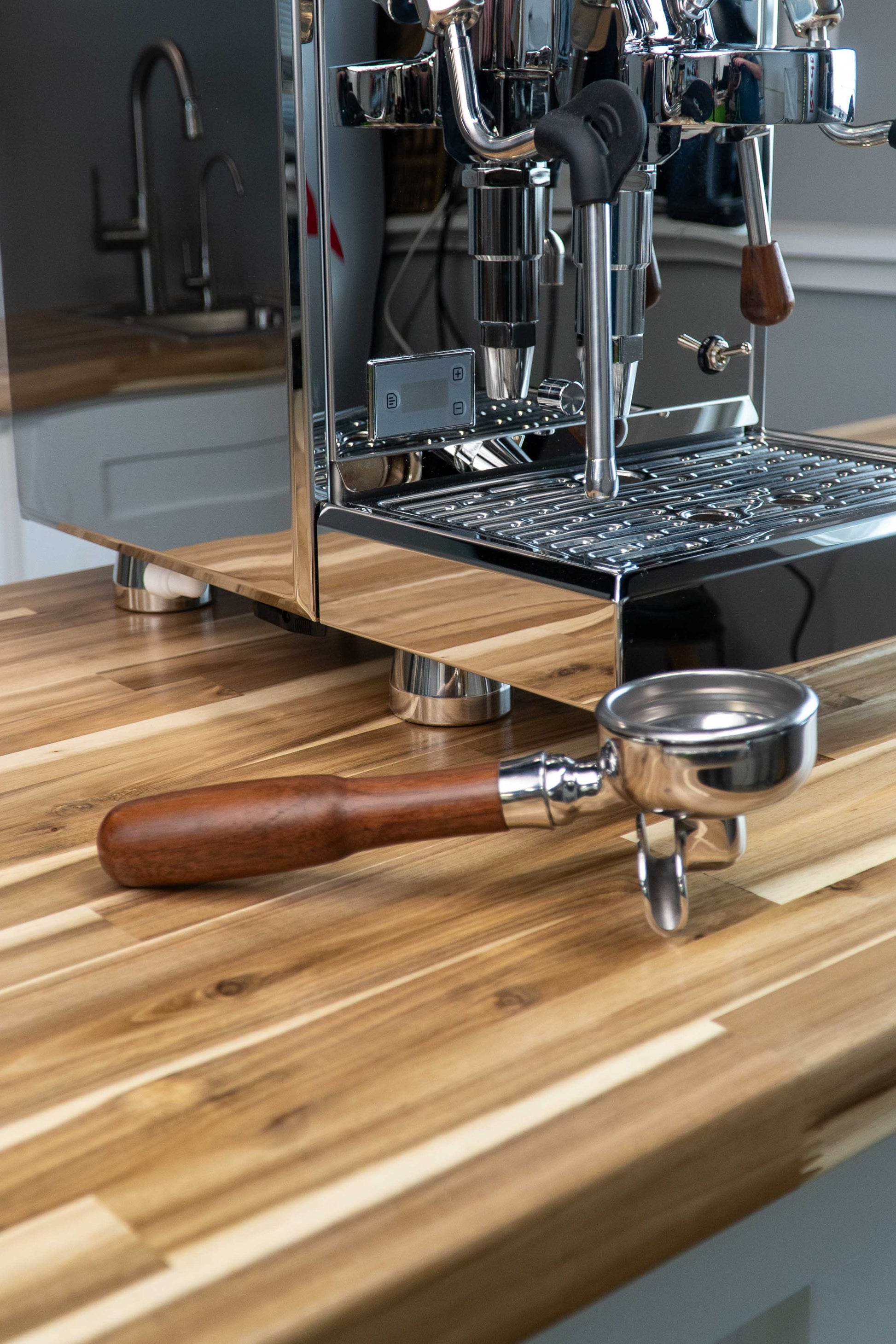 - Black Walnut Handles: Luxury design with ergonomic joystick and portafilter handles.