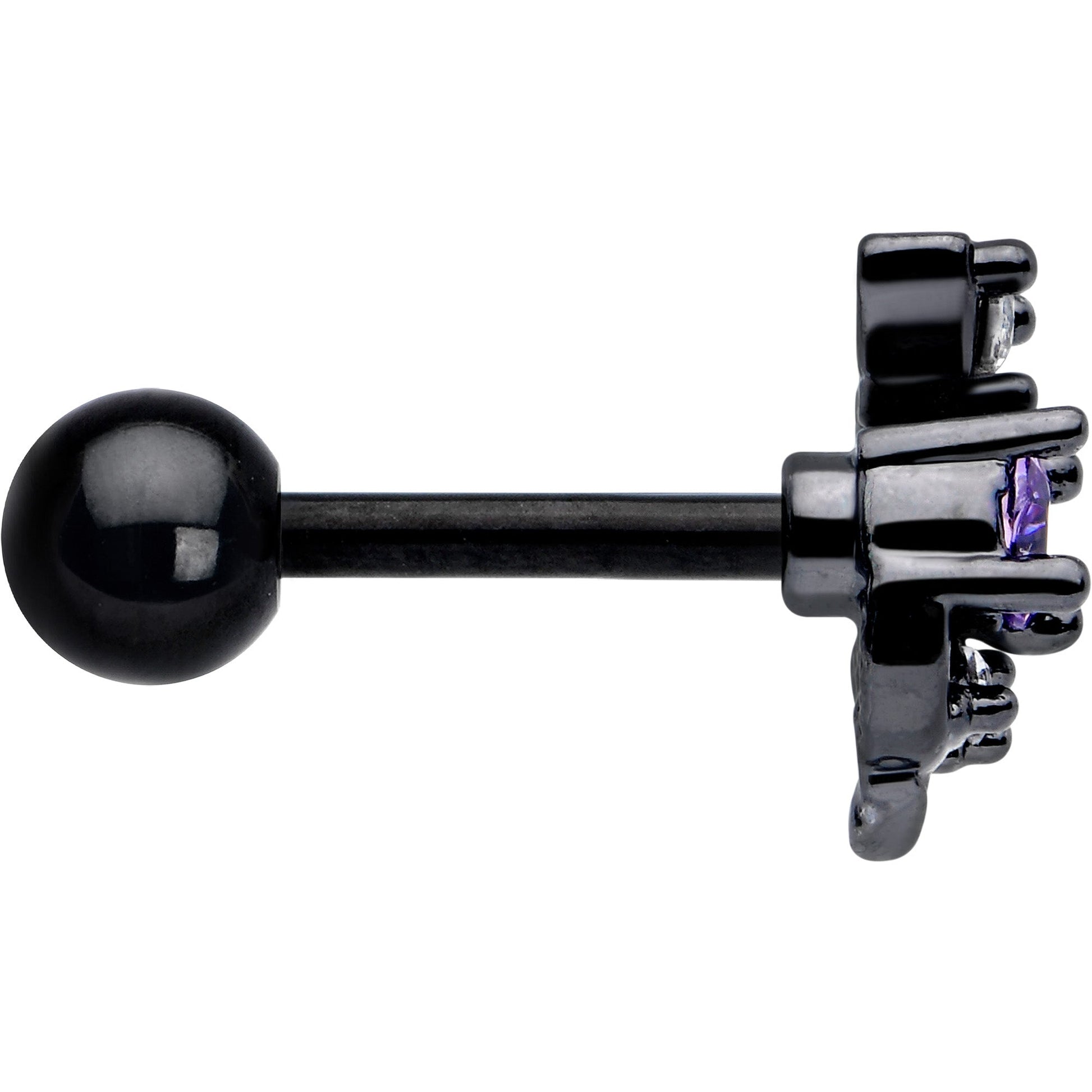 16 Gauge 1/4 Purple CZ Gem Black Twining Vine Cartilage Tragus Earring