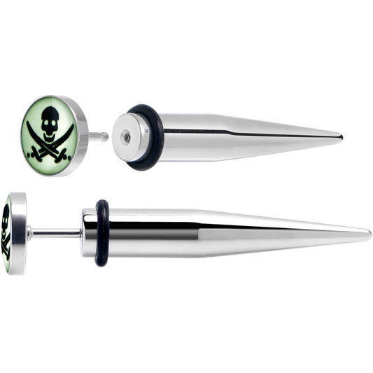 Glow in the Dark Pirate Skull Stainless Steel Taper Cheater Plug Set