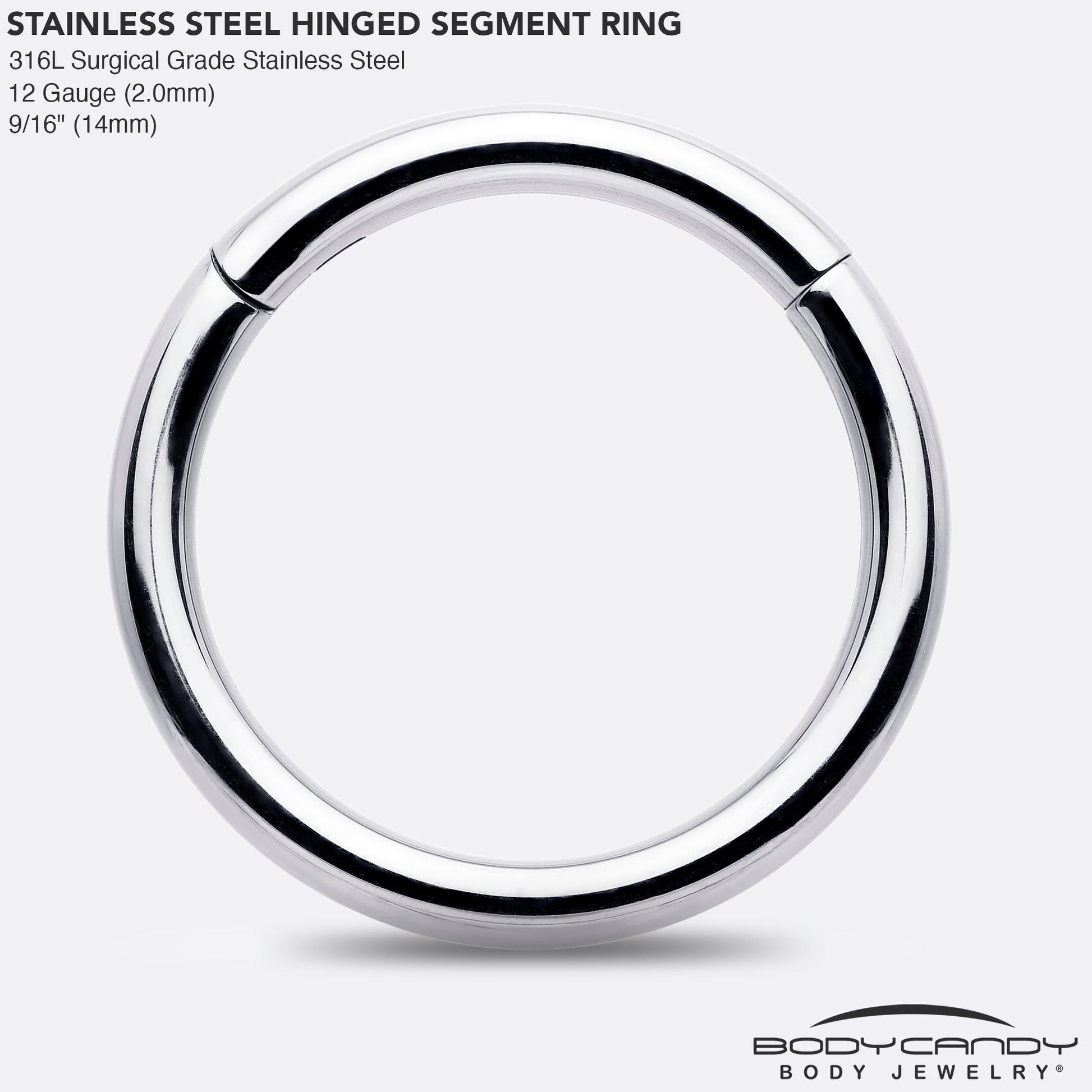 12 Gauge (2.0mm), 9/16" (14mm), Precision Hinged Closure, 316L Surgical Grade Stainless Steel