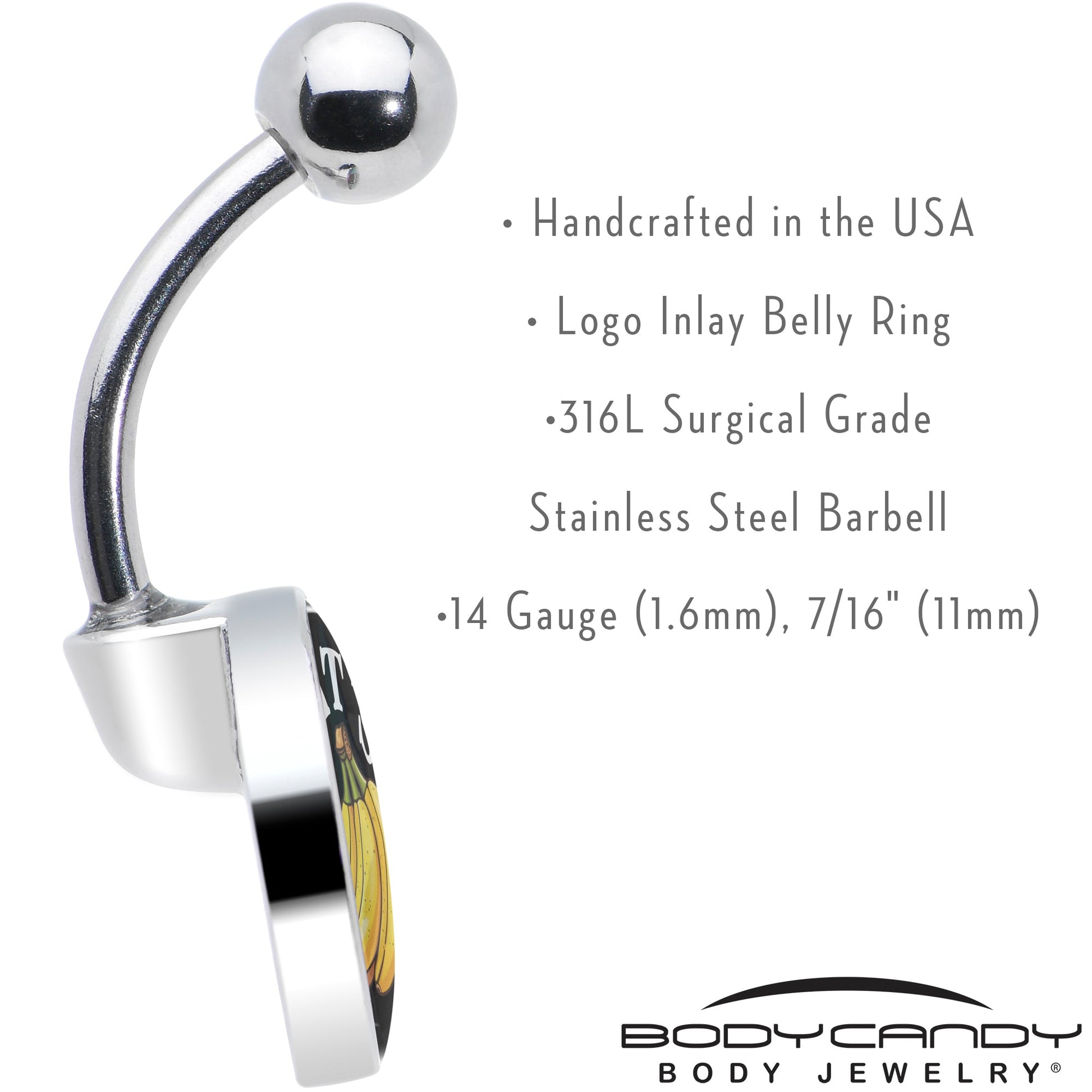 Go bananas with this playful belly button ring! Crafted with hypoallergenic materials, this 14-gauge belly ring features artist hand-drawn banana artwork for a truly unique touch. Each piece is hand-assembled in the USA, ensuring quality and charm in every detail. Perfect for those who love fun, quirky designs that stand out, this belly ring is your go-to for expressing your bold personality. Add a splash of whimsy to your body jewelry collection today!