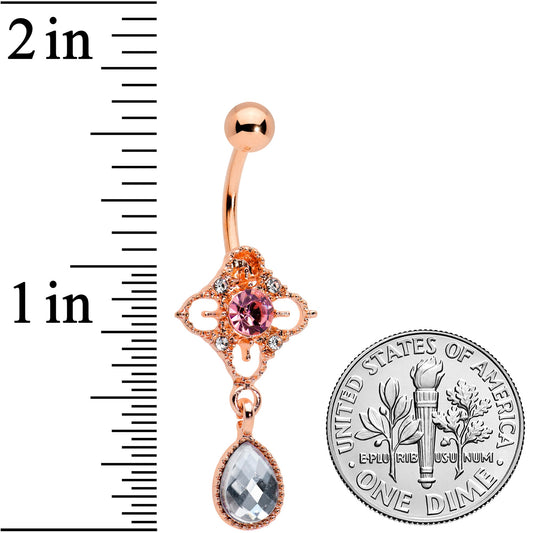 Clear Grey Purple Gem Rose Gold Tone Rhombus Dangle Belly Ring
