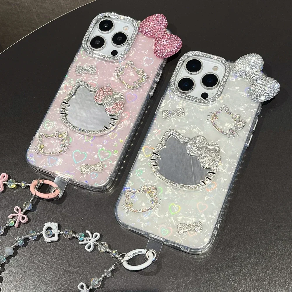 Hello Kitty Glitter Guard Mirror Case – 3D Cute Shockproof Anime Cover for iPhone 11–16 Pro Max (MINISO Edition)