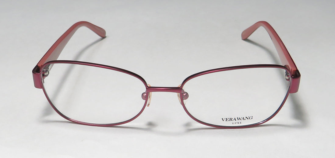 The frame is sold with demo lenses that have a logo stamped on them in ink. The frame can be fitted with real lenses at most optical stores. This frame provides comfortable fit and flatters a variety of face shapes. These eyeglasses are made of metal and high quality, durable acetate plastic. The frame has spring hinges. Spring hinge temples prevent you from stretching the fit of your glasses and ensure that they remain intact and not become loose or out of shape. This frame is from the exclusive Luxe collection. This is a flagship line of eyewear manufactured by Vera Wang from highest quality materials. Original case is included. The glasses are made in China.