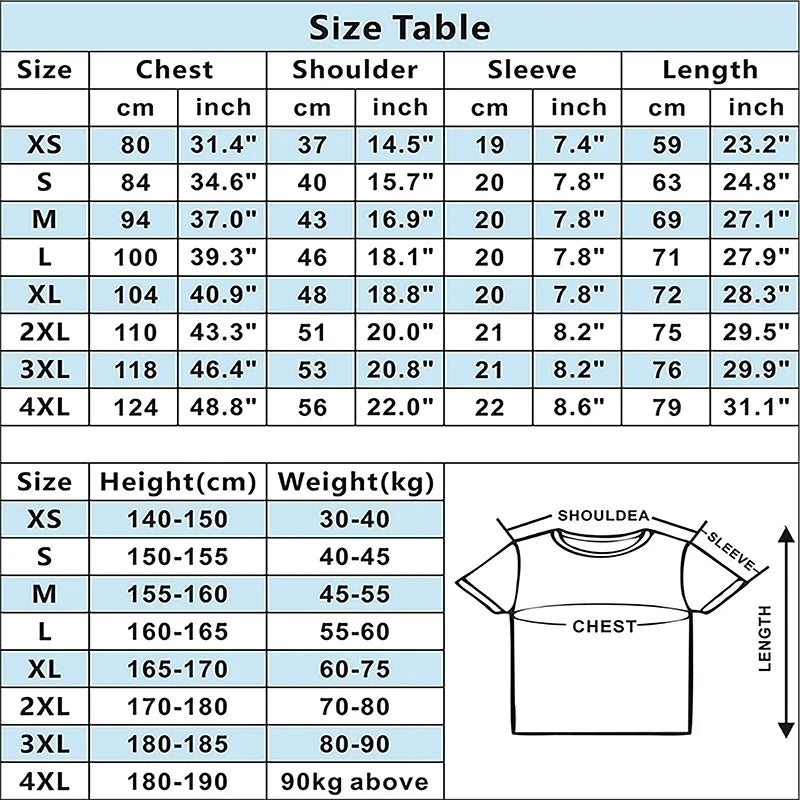 • Sizes Available: XS, S, M, L, XL, 2XL, 3XL, 4XL