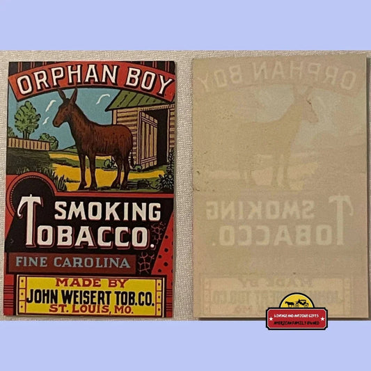 Rare Antique Vintage Orphan Boy Smoking Tobacco Label from 1910s