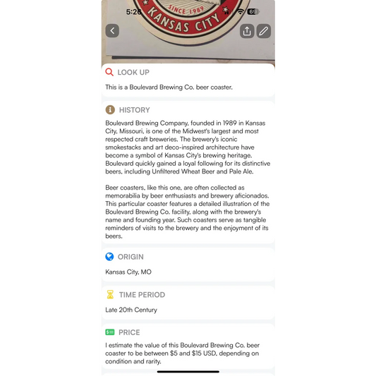 Rare Kansas City Vintage Boulevard Brewing Beer Coaster