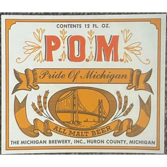 Rare 1950s Pride of Michigan Beer Label Antique Vintage Collectible