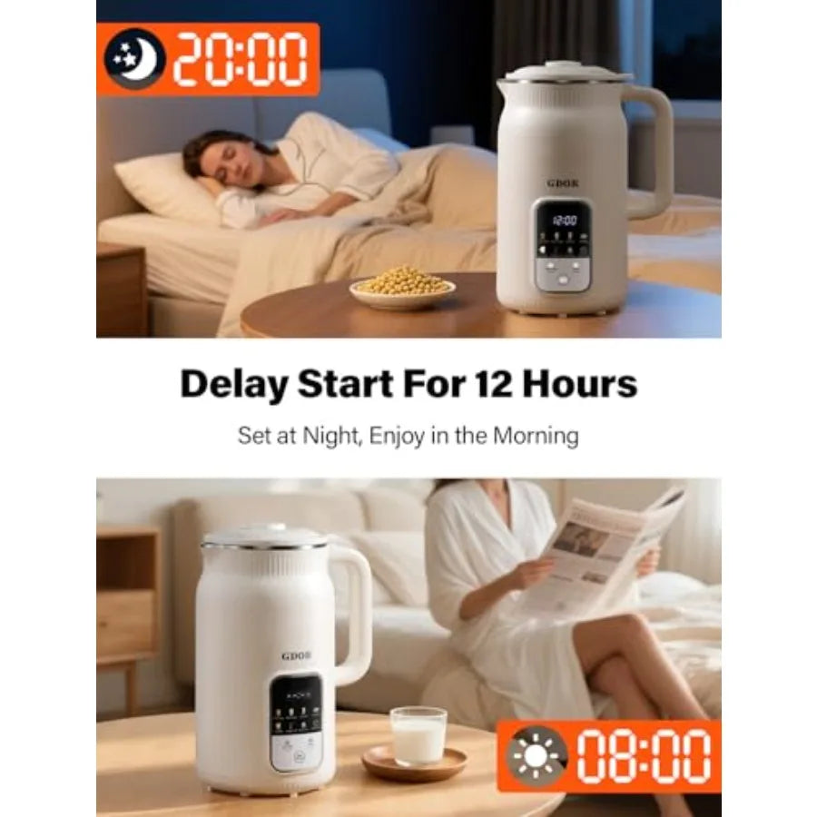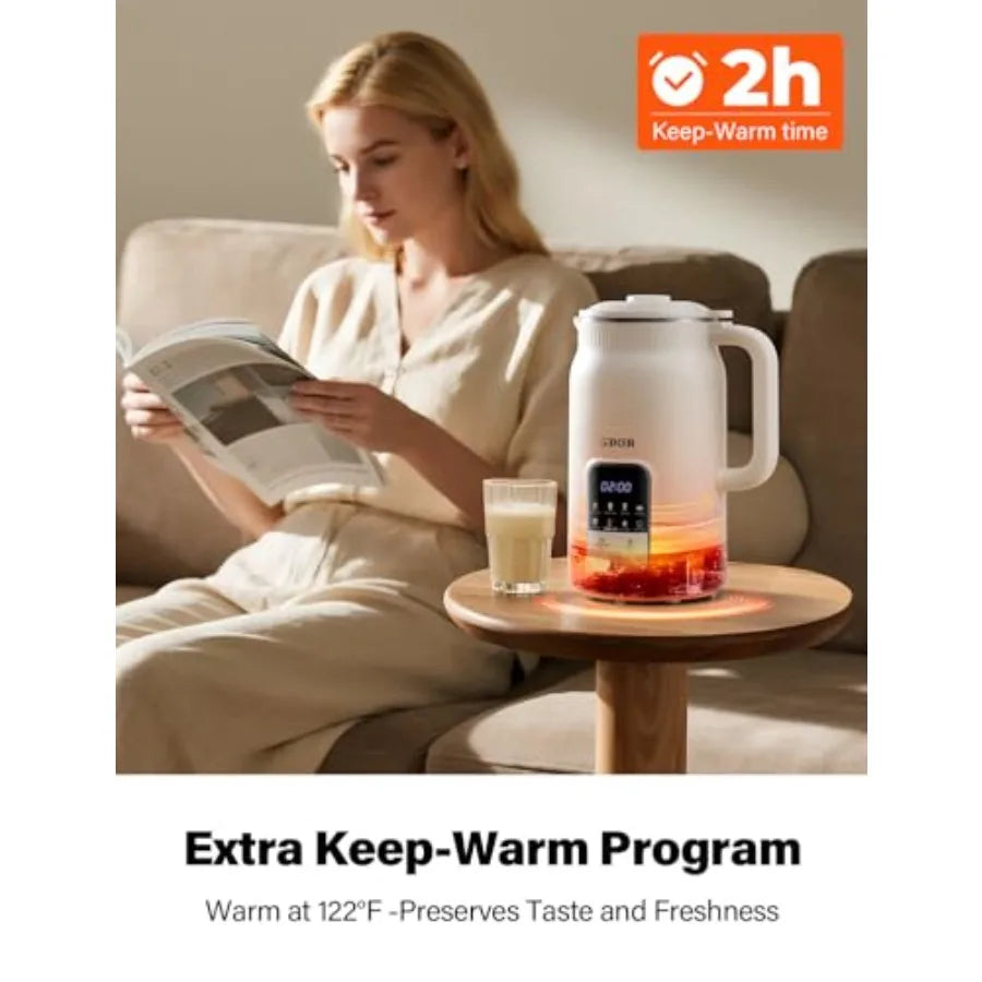 12-HOUR DELAY START & 2H KEEP WARM: Plan ahead with the 12-hour delay start and enjoy fresh soy milk right when you need them. The 2-hour keep warm function maintains your beverage at the ideal temperature