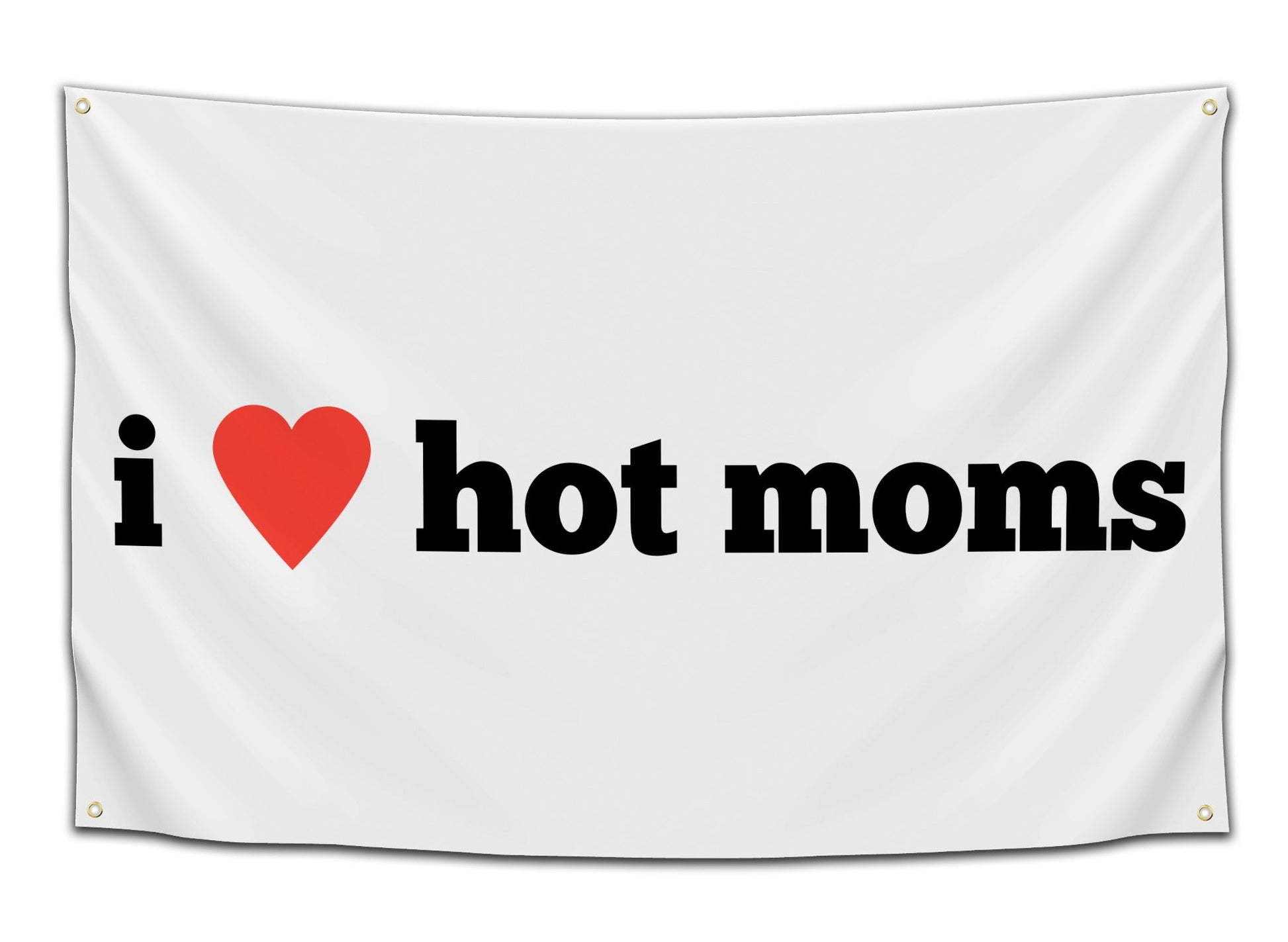 Our “i ❤️ hot moms” flag brings cheeky charm and major laughs to dorms, basements, and more.