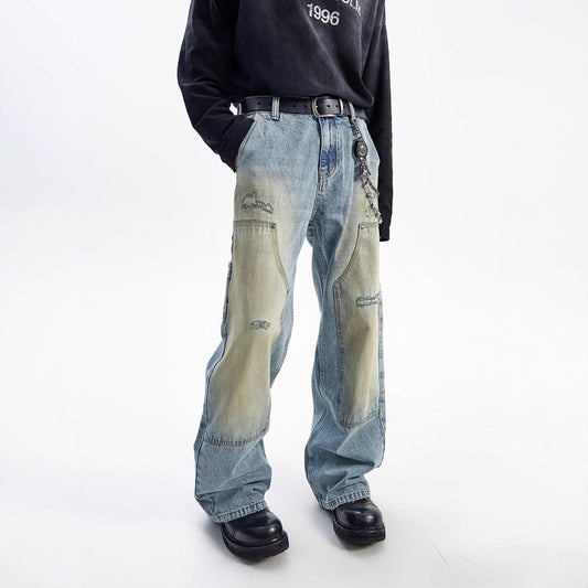 Trendy Washed Old Straight-leg Wide-leg Pants