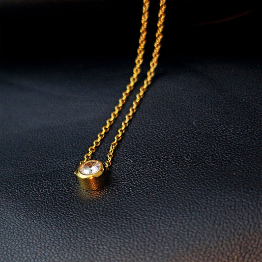 Regular price From £27.00 GBPRegular priceUnit price per£49.00 GBPSale price From £27.00 GBPStainless Steel Gold Tone PVD Chain Dainty Bezel CZ Pendant Necklace