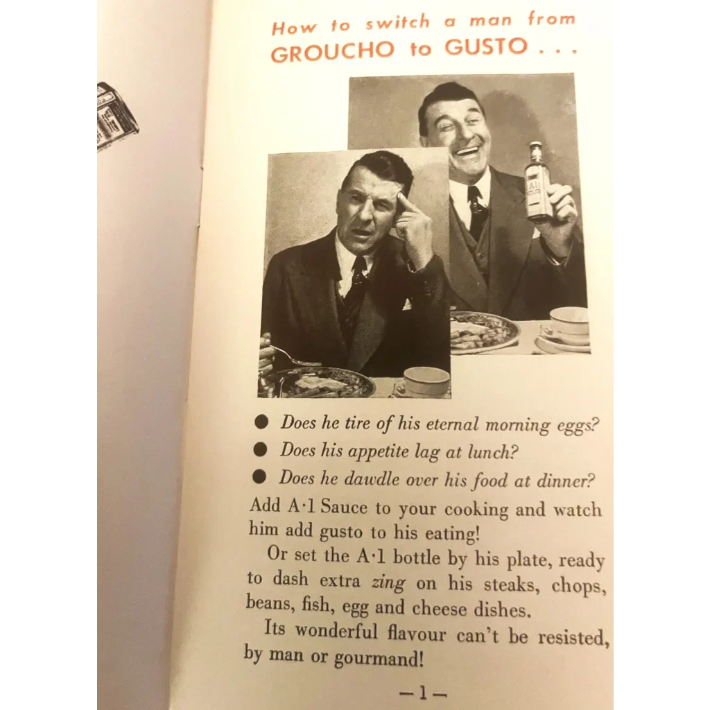 This Rare Antique Vintage 1941 A1 Cooking for a Man Cookbook is more than just a collection of recipes; it's a time capsule of American culture, gender roles, and culinary trends. For the discerning collector of vintage cookbooks, the enthusiast of mid-century Americana, or anyone fascinated by the evolution of male-oriented cooking, this rare find is an absolute must-have. Don't let this opportunity slip through your fingers - seize your chance to own a slice of culinary history and immerse yourself in the flavors, aromas, and cooking techniques that shaped a generation of American men in the kitchen!