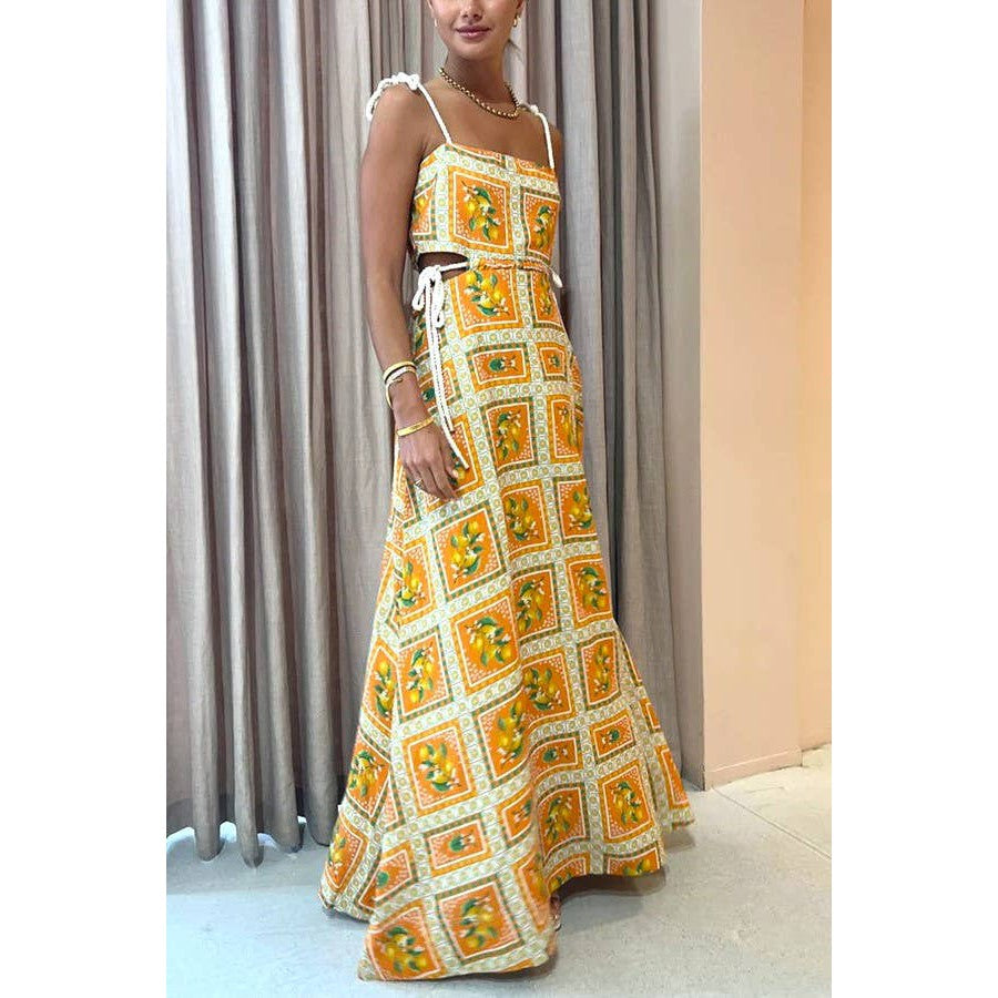 Get ready to feel like the ultimate resort diva in this playful lemon-print dress that features a flirty full length, as well as trendy waist cutouts. The print placement of each dress is unique, making you stand out in a sea of basic outfits. So go ahead and squeeze the day(lights) away in this vibrant and fun dress!