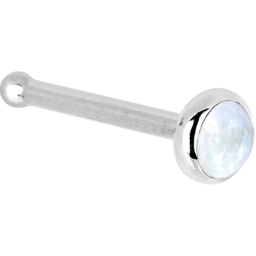 Solid 14K White Gold 2mm Rainbow Moonstone Nose Ring
