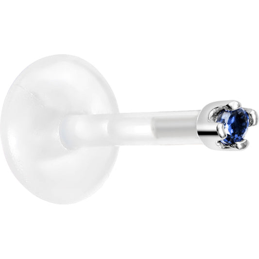 Solid 14K White Gold September 1.5mm CZ Bioplast Push in Labret Monroe