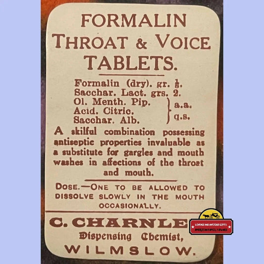 Rare 1910s Formaline Pharmacy Label Cures Throat Ailments