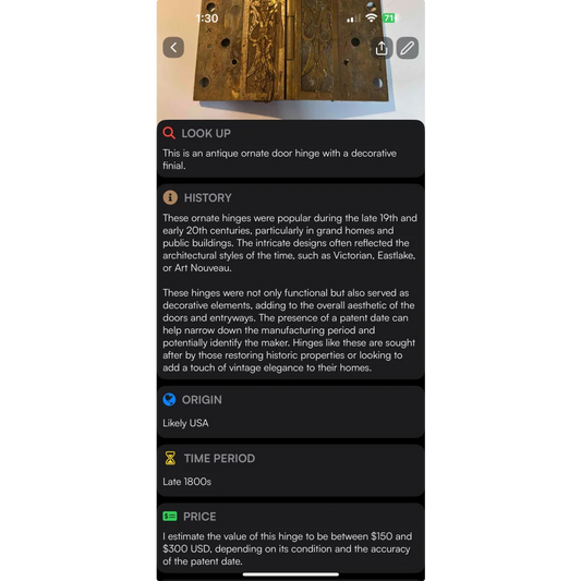Rare Antique Ornate Door Hinge with Patent Design Victorian Charm