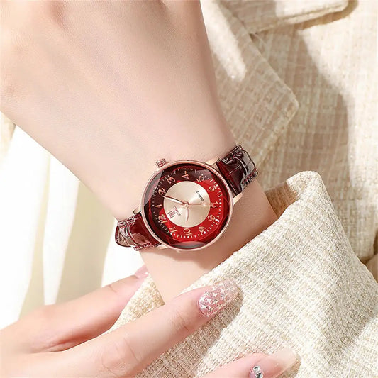 Women's Watch Simple Arabic Numerals Quartz Watch Fashionable Pink Leather Lady Business Clock Wristwatch