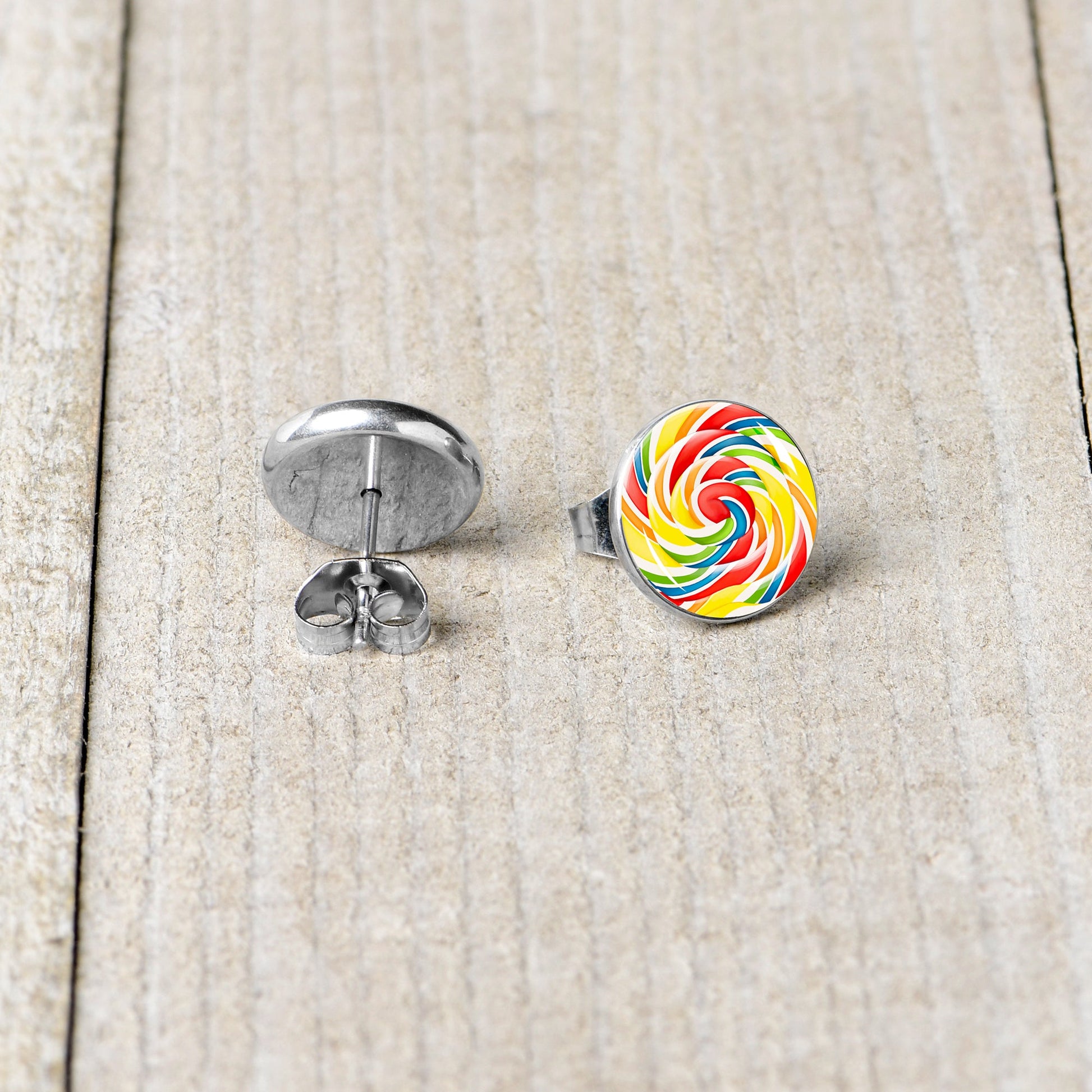 Rainbow Swirl Lollipop Stud Earrings by Onyx O