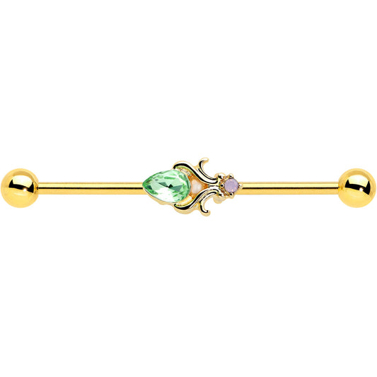 14G Green Gem Gold Tone Shades of Spring Industrial Barbell 38mm