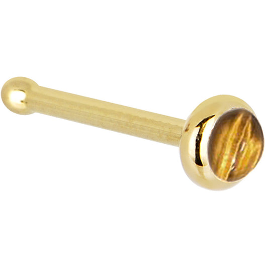 Solid 14K Yellow Gold 2mm Tiger Eye Nose Ring