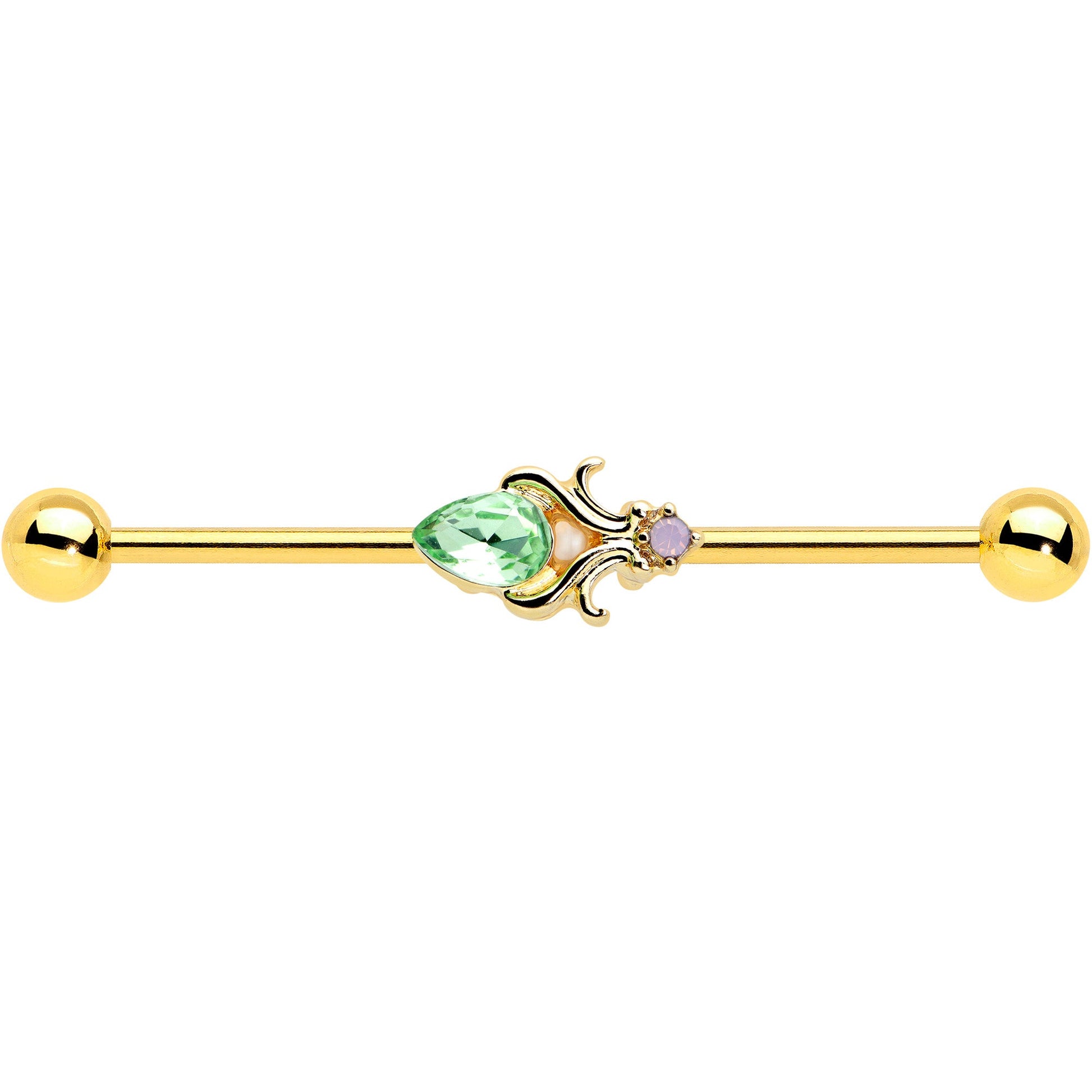 14 Gauge Green Gem Gold Tone Shades of Spring Industrial Barbell 38mm