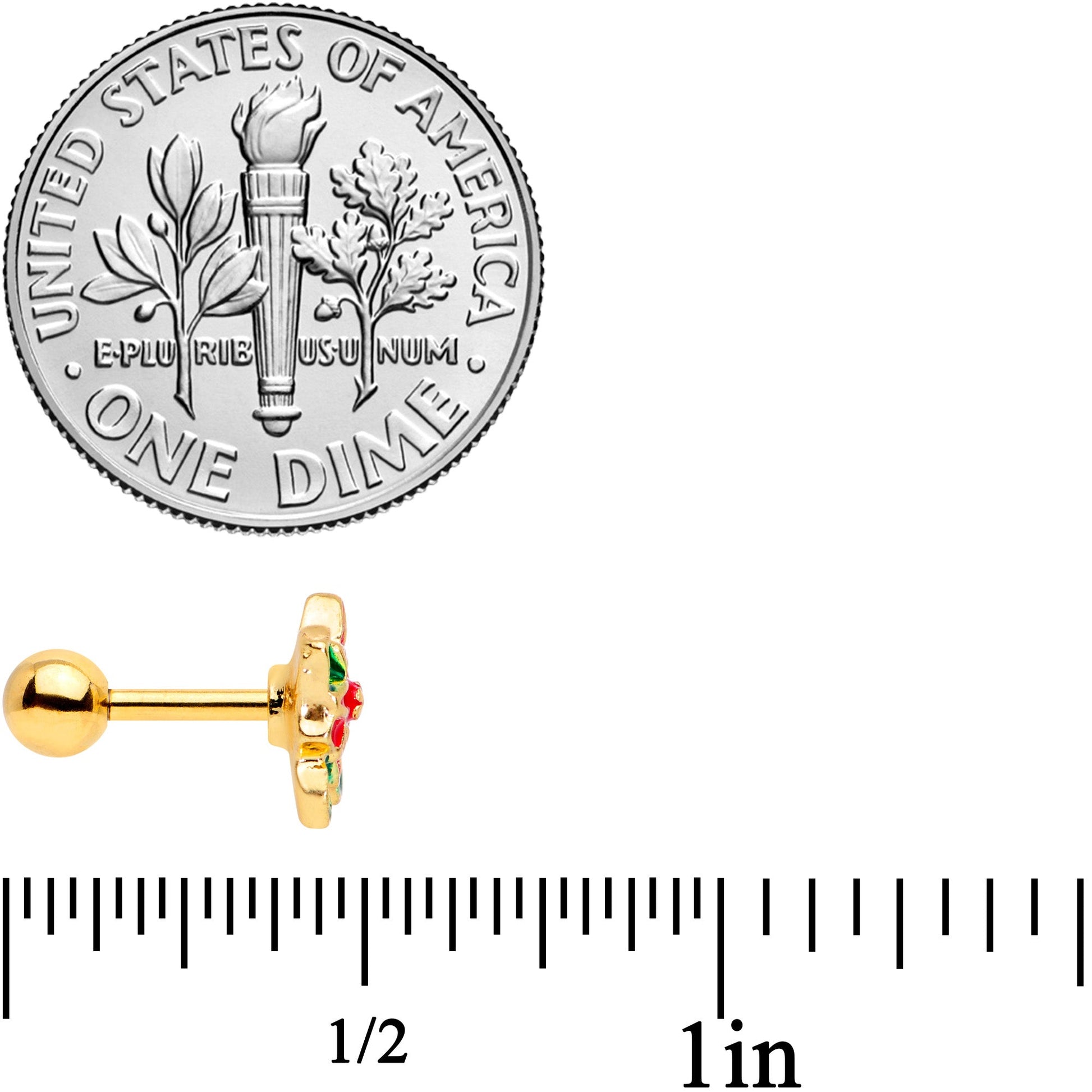 Just because it's the winter holiday season doesn't mean we can't still have colorful flowers, like with this 16 gauge cartilage stud! It's made with a 6mm gold tone PVD over 316L surgical grade stainless steel straight barbell with a 4mm ball end. The front end features a gorgeous holiday poinsettia charm with deep green leaves and a bright red blossom. Since this flower doesn't need watering, you can wear for Christmas or any other time of year in multiple piercings including helix, tragus, and some conch piercings! That's a flower that's festive and still super functional!Specifications