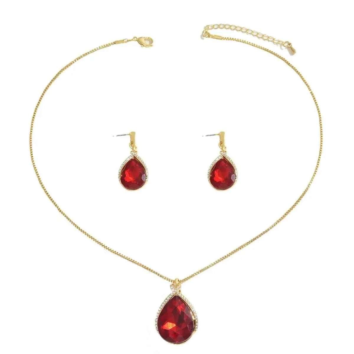 18K Gold-Plated Rhinestone Teardrop : Necklace and Earrings Jewelry Set