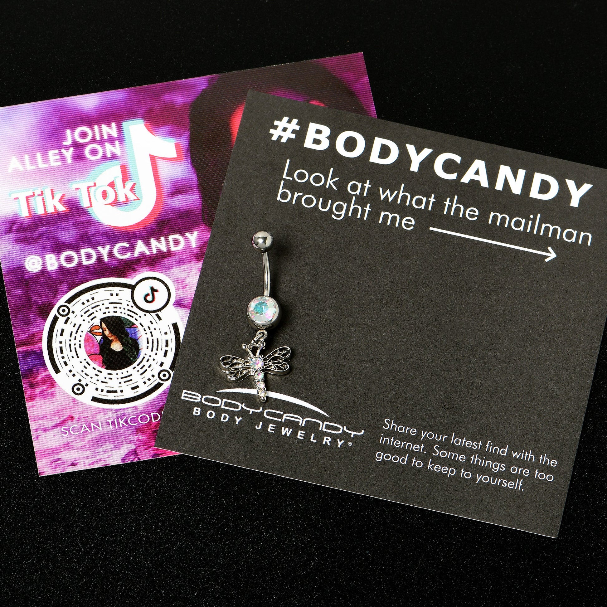 Dragonflies are constantly on the move so sometimes they just want to.....hang out. This 14 gauge navel ring is made with a 3/8" durable 316L surgical grade stainless steel curved barbell with a 5mm top ball end. The bottom ball end is 8mm and set with a large aurora gem. Dangling from beneath is an ornate dragonfly charm, with elegantly openwork wings. The dragonfly's body is and center are set with aurora gems for a look that's both baroque and cohesive. You'll want to hang out with this dragonfly all the time!