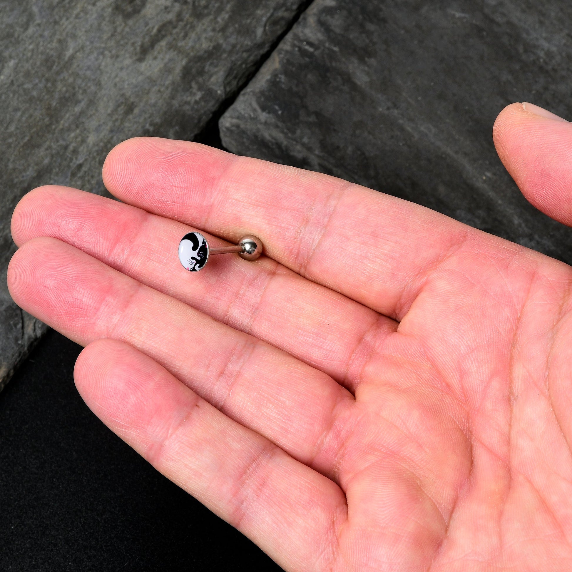 Hypoallergenic jewelry for sensitive skin.Cute Kitty Cat Yin Yang Barbell Tongue Ring