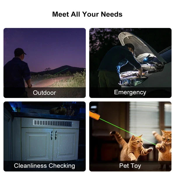 ● Pro White Light & Green Laser: White light for daily illumination, laser for pets toy / presentation, and the white light and laser can work in tandem for providing targeted point plus overall brightness.