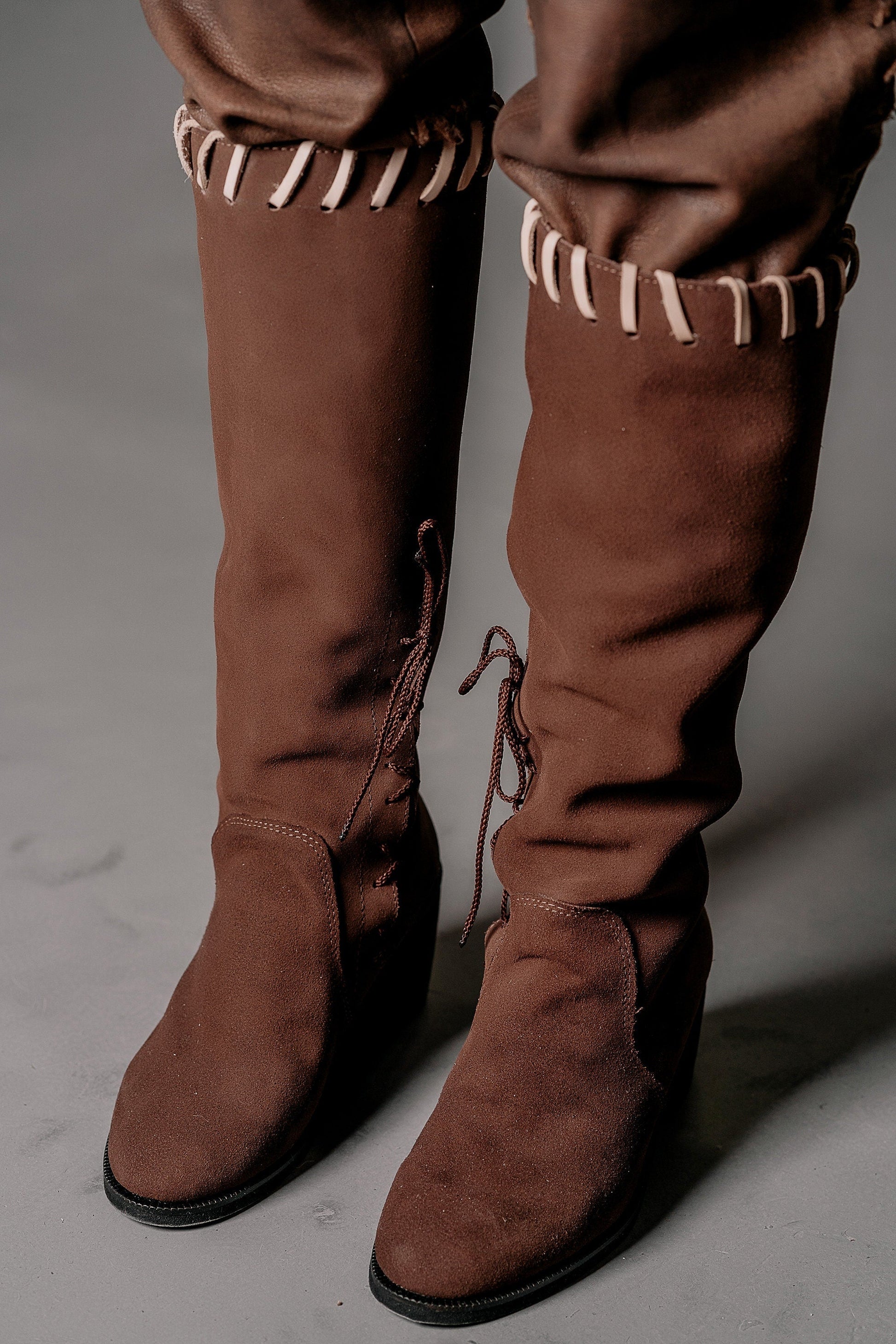 Medieval High Leather Boots for LARP/Cosplay made by SokolWorkshop. leather boots stylization based on Viking serial. Artificial aging creates the effect of old age. Can be made of leather in different colors (choose options)