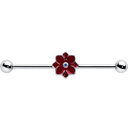 14G Aurora Gem Poinsettia Flower Festive Industrial Barbell 38mm