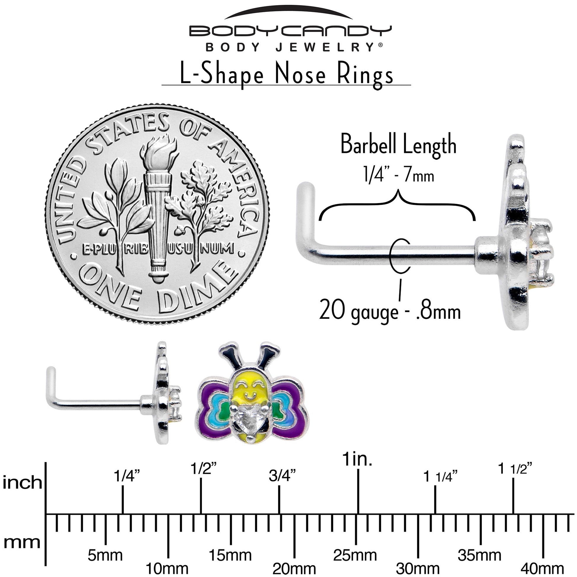 20 Gauge 7mm Clear CZ Gem Butterfly Love Bug L Shape Nose Ring