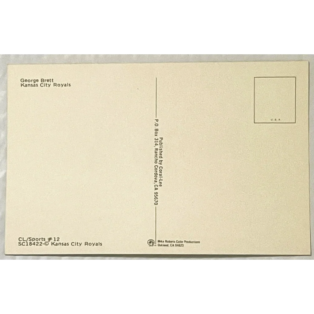 Baseball enthusiasts and collectors, prepare to be amazed! We proudly present the ultimate piece of memorabilia: the iconic 1980s MLB World Series Champ, Hall of Famer George Brett KC Royals Postcard! This vintage treasure is a true gem that captures the essence of one of baseball's greatest legends. Measuring a classic 5 1/2 x 3 1/2 inches, this postcard is a time capsule that transports you back to an era when George Brett dominated the diamond and led the Kansas City Royals to glory!