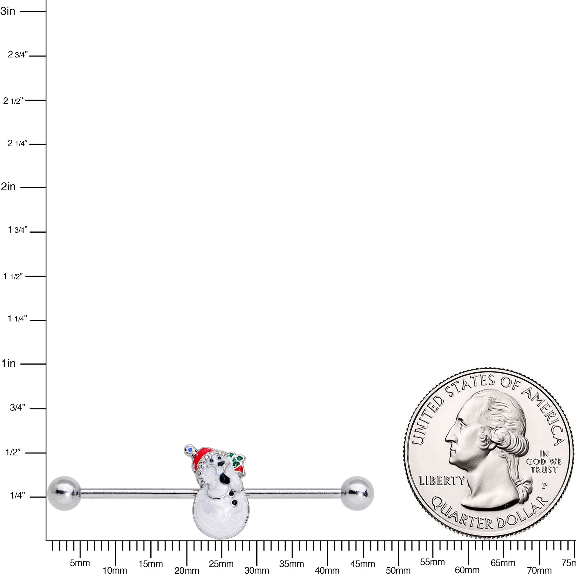 14 Gauge Aurora Green Gem Snowman Christmas Industrial Barbell 38mm