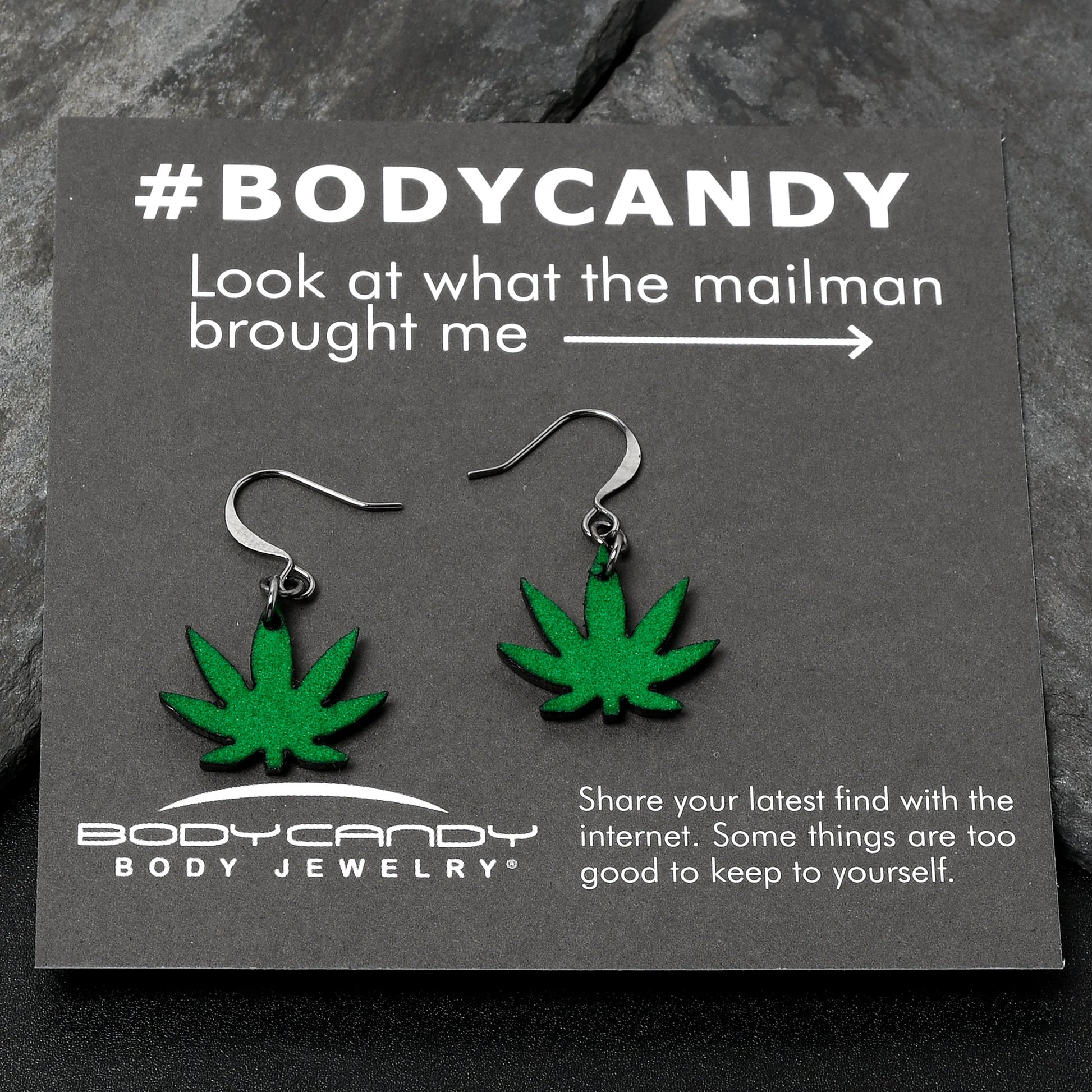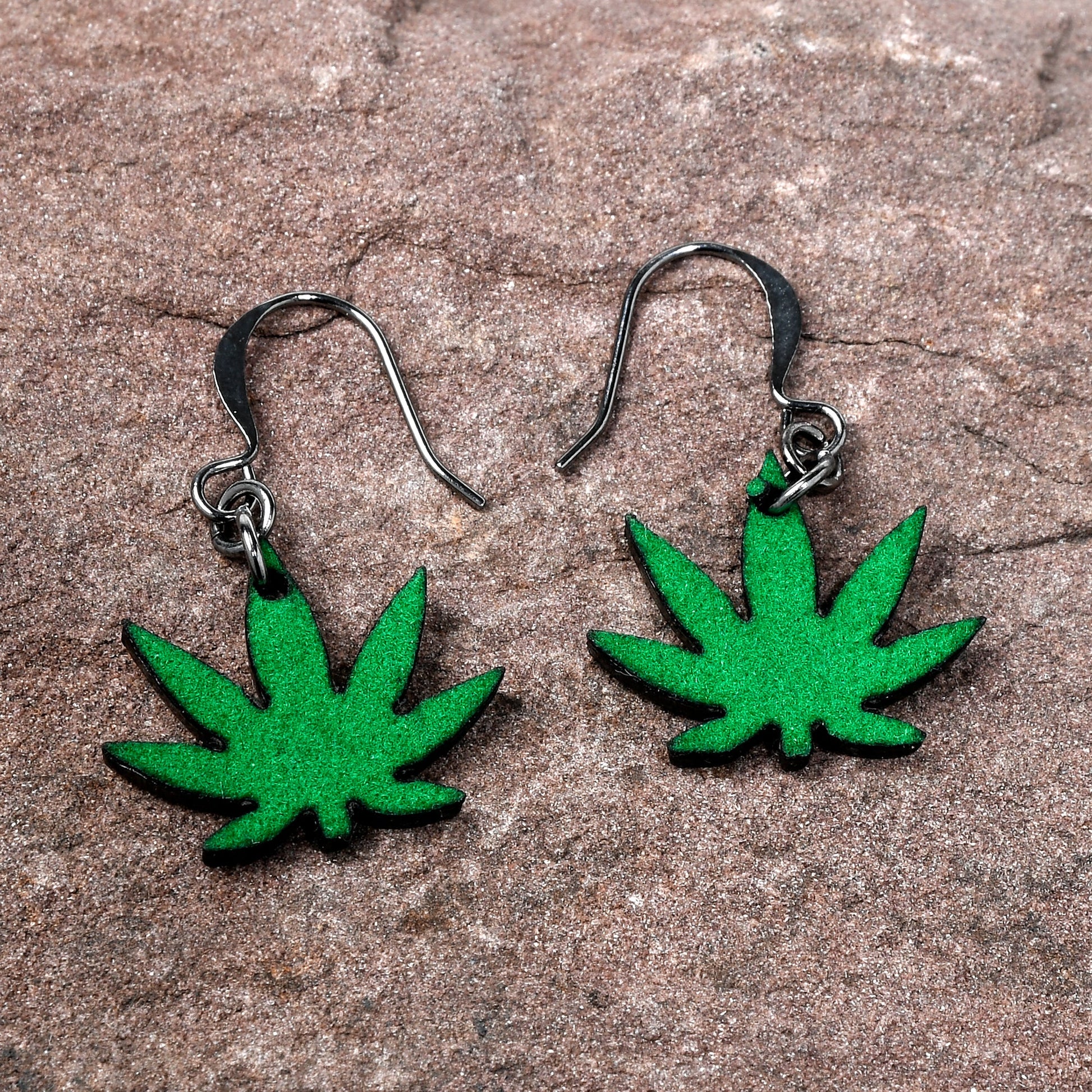 You will want to puff and puff, but make sure you do not pass these dangle earrings for pierced ears. They are made with gunmetal plated brass fishhook ear wires. They feature dangling pot leaf charms, covered in green felt for style you can feel. You will be glad these green fuzzy marijuana leaf earrings are totally legal. Sold as a set of two.Specifications