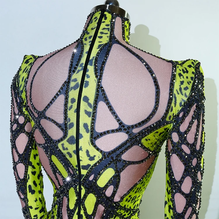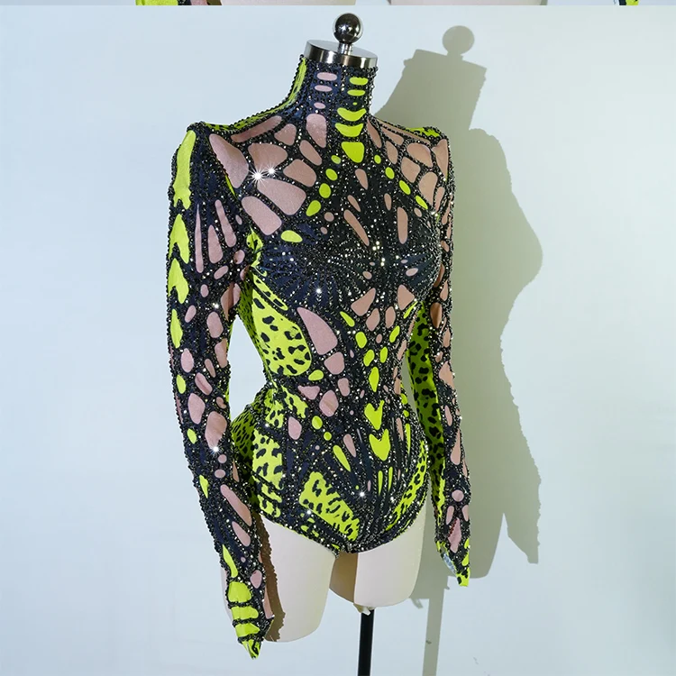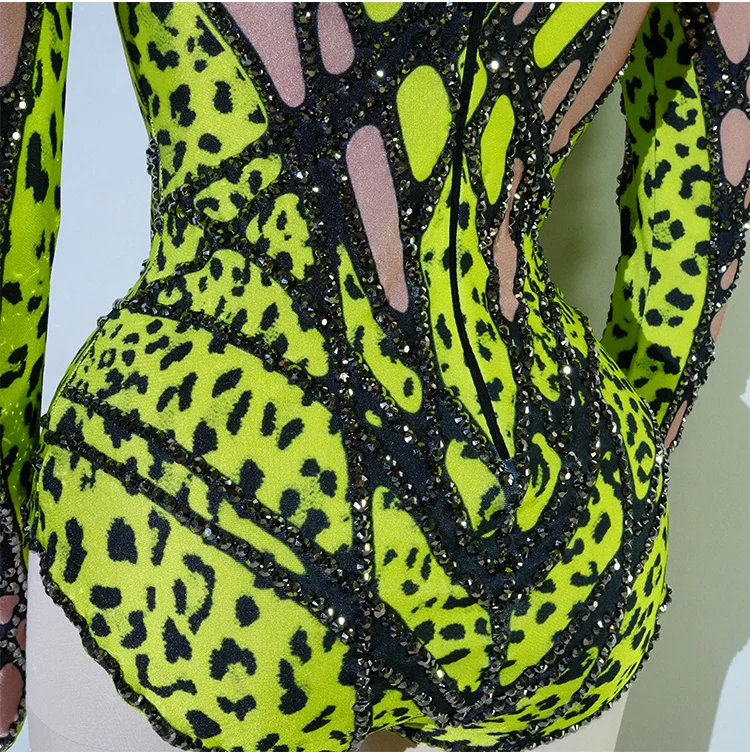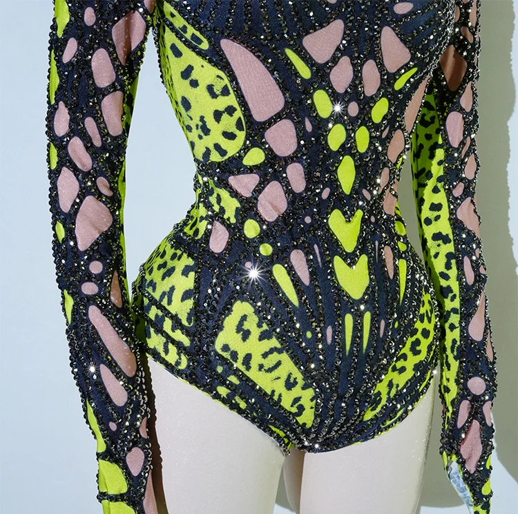 Emerald Voltage Sparkle Rhinestone Bodysuit Drag Queen Stage Combat Gear