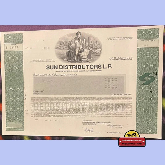 Rare Vintage Sun Distributors Stock Certificate from 1990s Sunoco