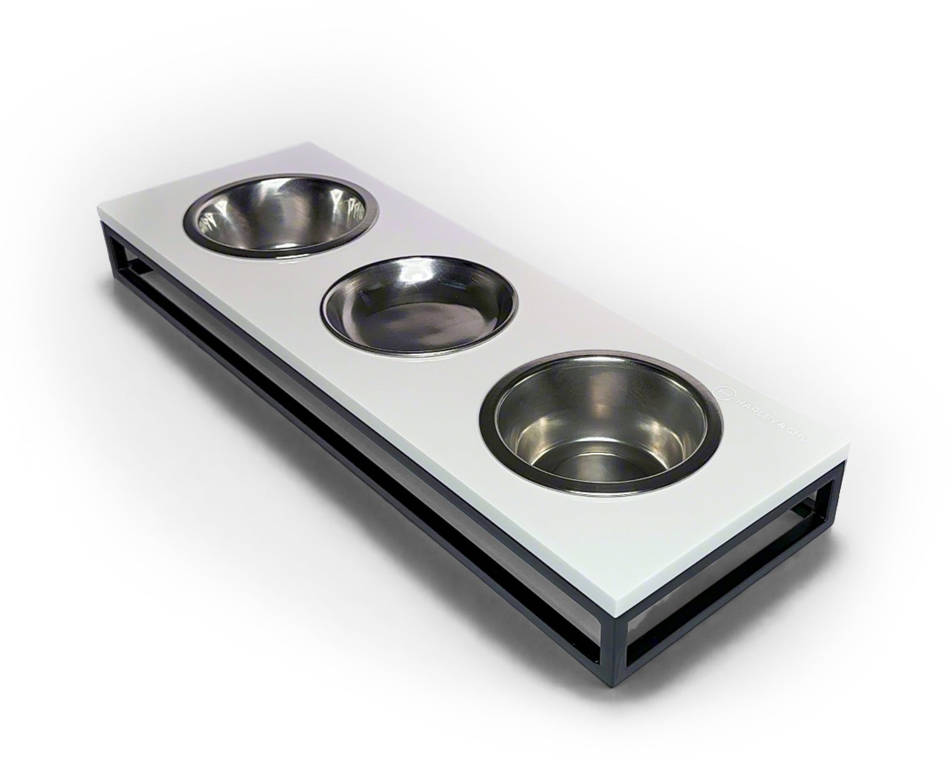 Introduce elegance and functionality to your home with our handmade Cat Feeding Station, crafted by Harley & Cho. This stylish feeding station is perfect for a family of cats, featuring a sturdy black metal stand and a sophisticated acrylic stone top.